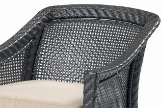 Krzesło z podłokietnikami wykonane ze sztucznego rattanu - włókno syntetyczne na bazie kauczuku, jest mocnym i trwałym materiałem, wysoki poziom elastyczności tkania - nie traci wyglądu, nie rozciąga się, nie pęka, jest odporne na wilgoć, nagłe zmiany temperatury.