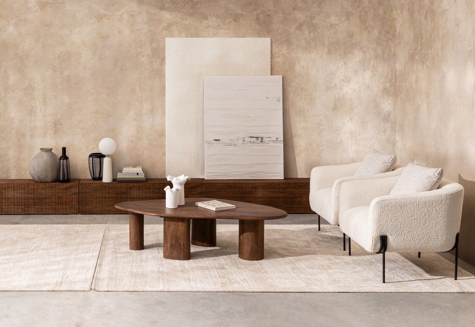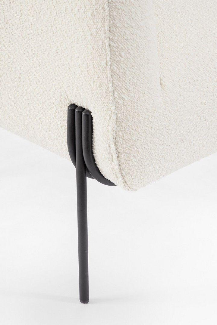 Tapicerka to modna, strukturalna tkanina bouclé (poliester) – jest wyjątkowo przyjemna w dotyku i wnosi do wnętrza ciepłą teksturę.