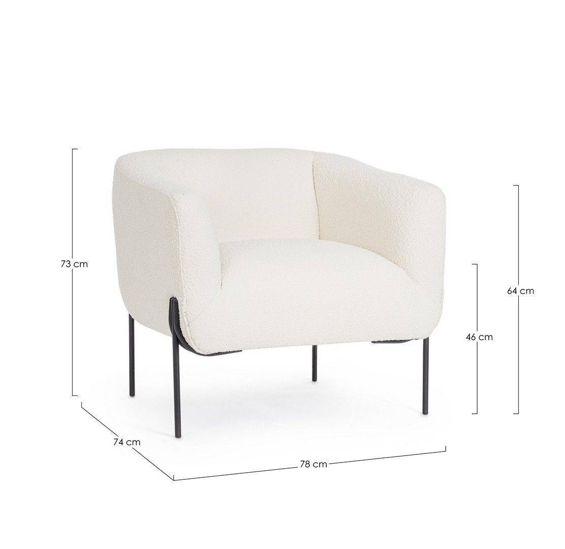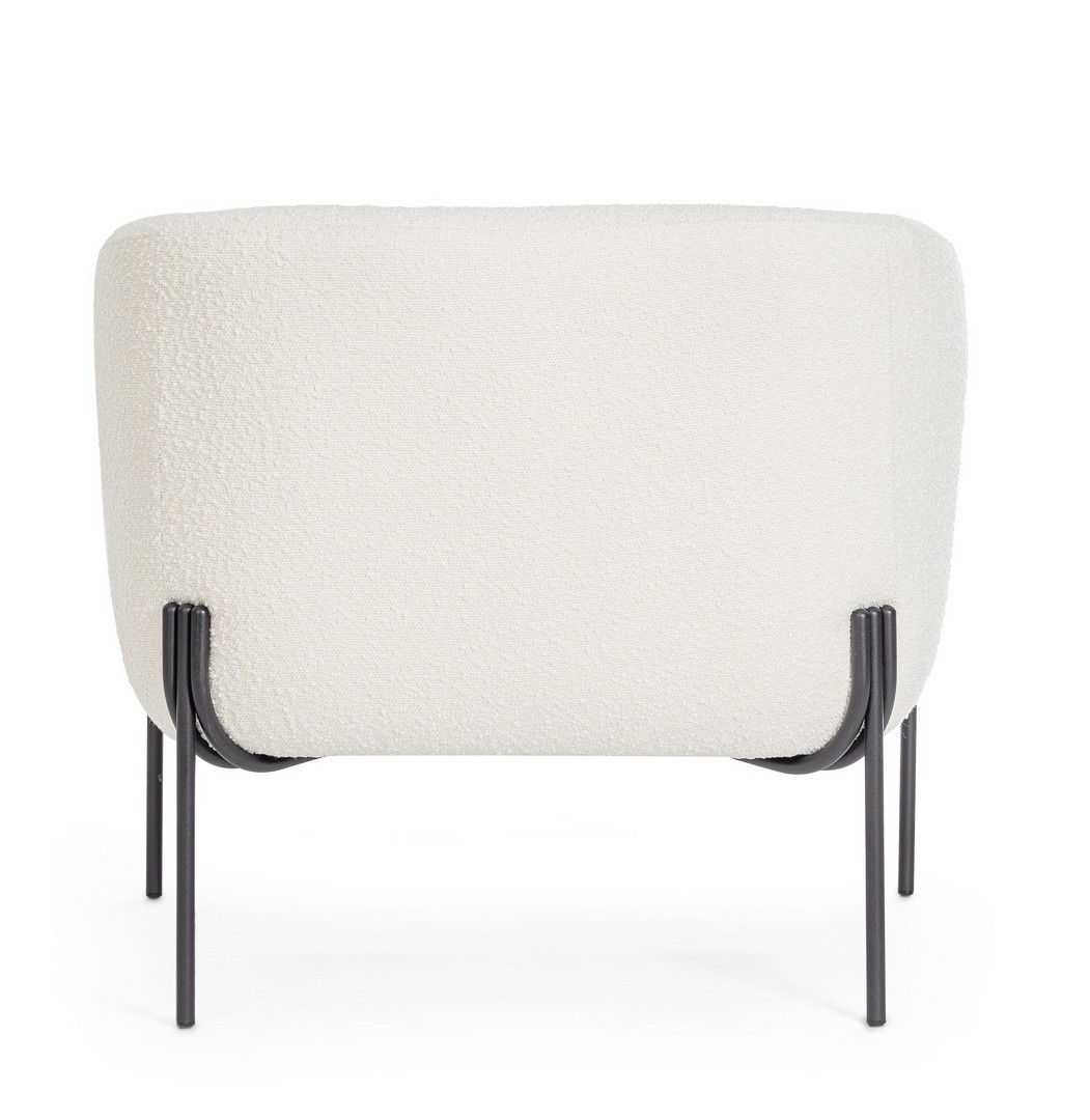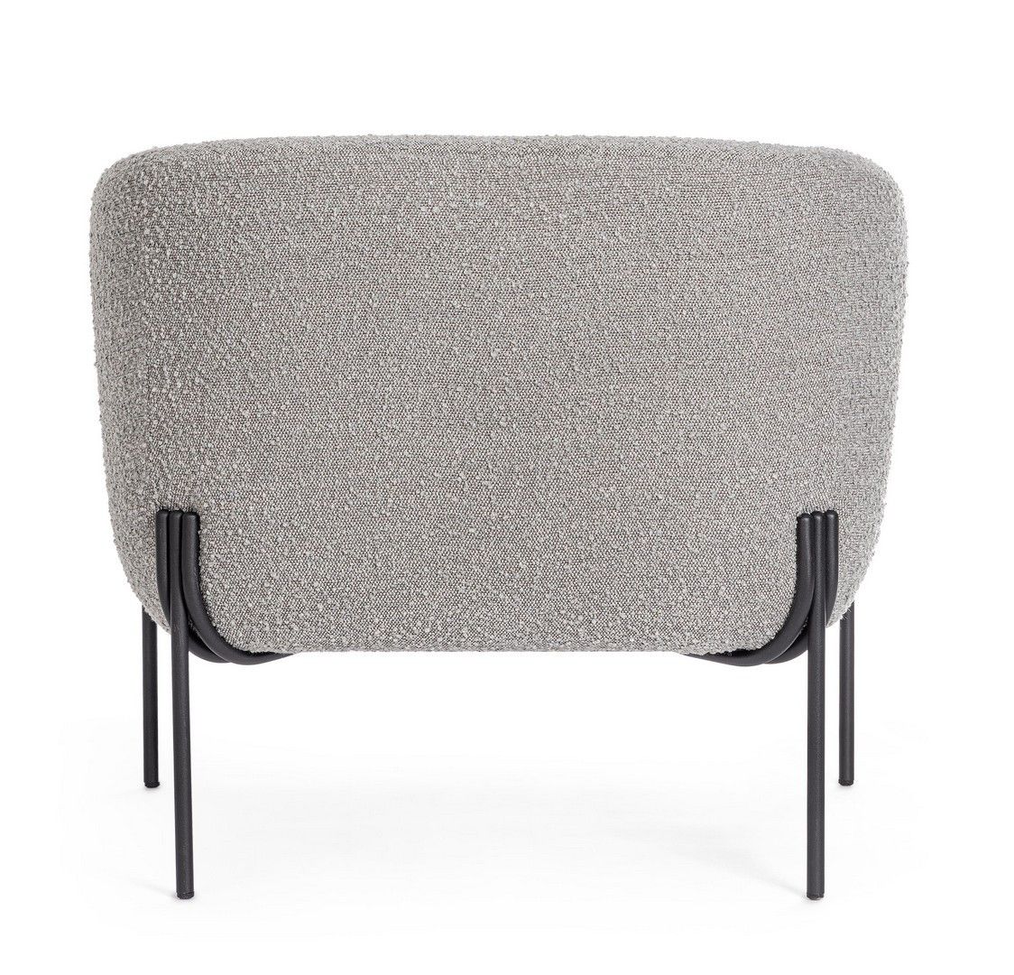 Mebel ma wzmocniony korpus siedziska (na bazie płyty) o zaokrąglonej, kubełkowej formie. Stabilność zapewniają czarne, stalowe nogi malowane proszkowo epoksydowo, które stanowią kontrastową, minimalistyczną ramę dla miękkiego korpusu.