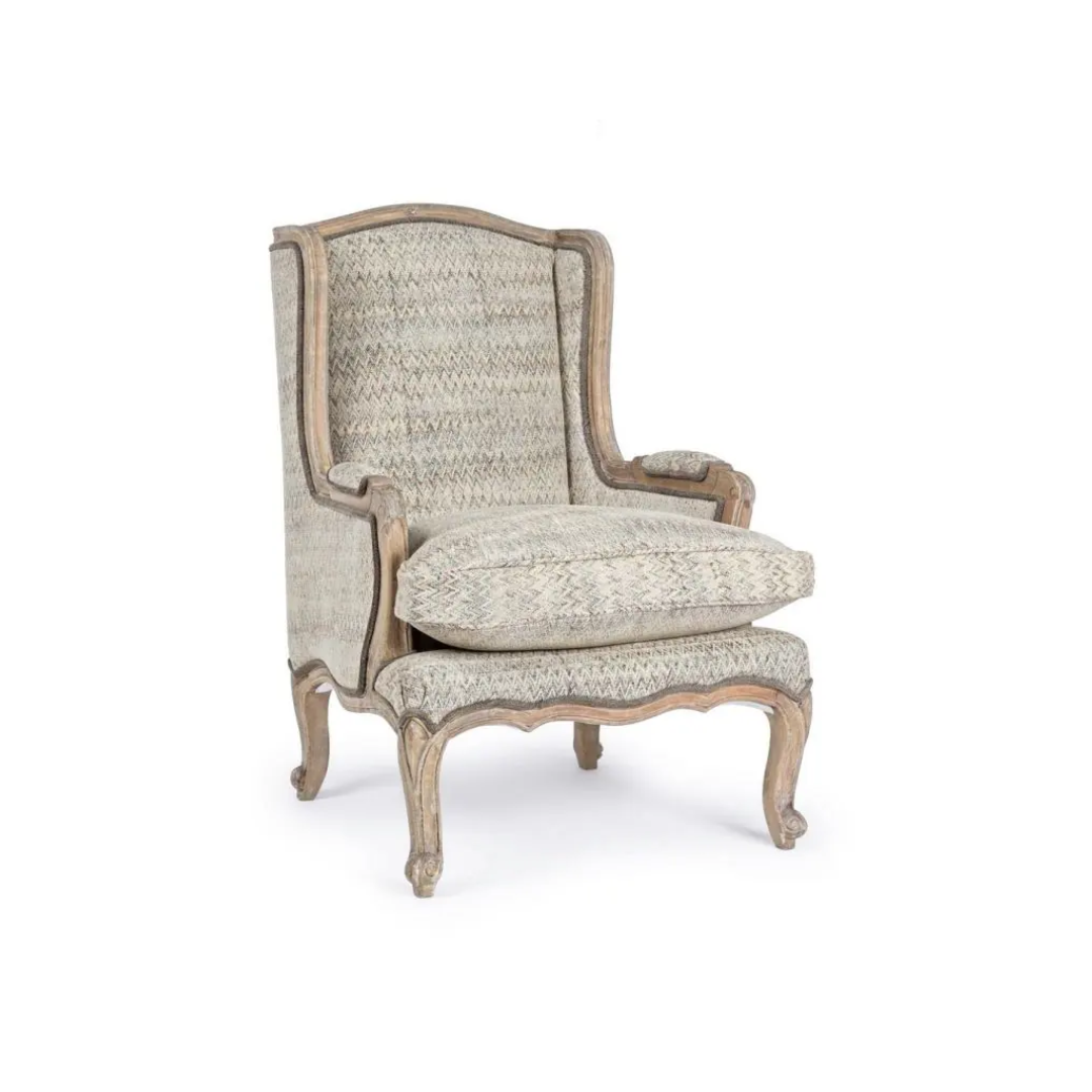 Fotel ELODIE to synonim ponadczasowej elegancji w stylu Klasycznym. Łączy szlachetne drewno z miękkością naturalnej bawełny.