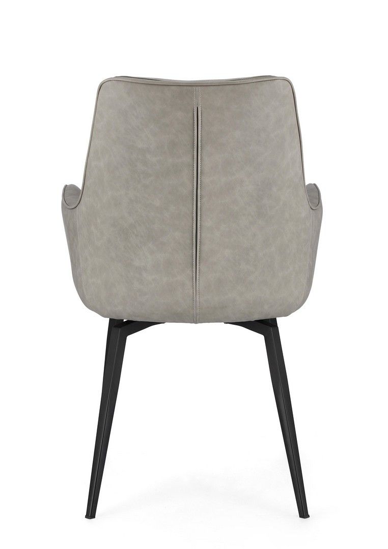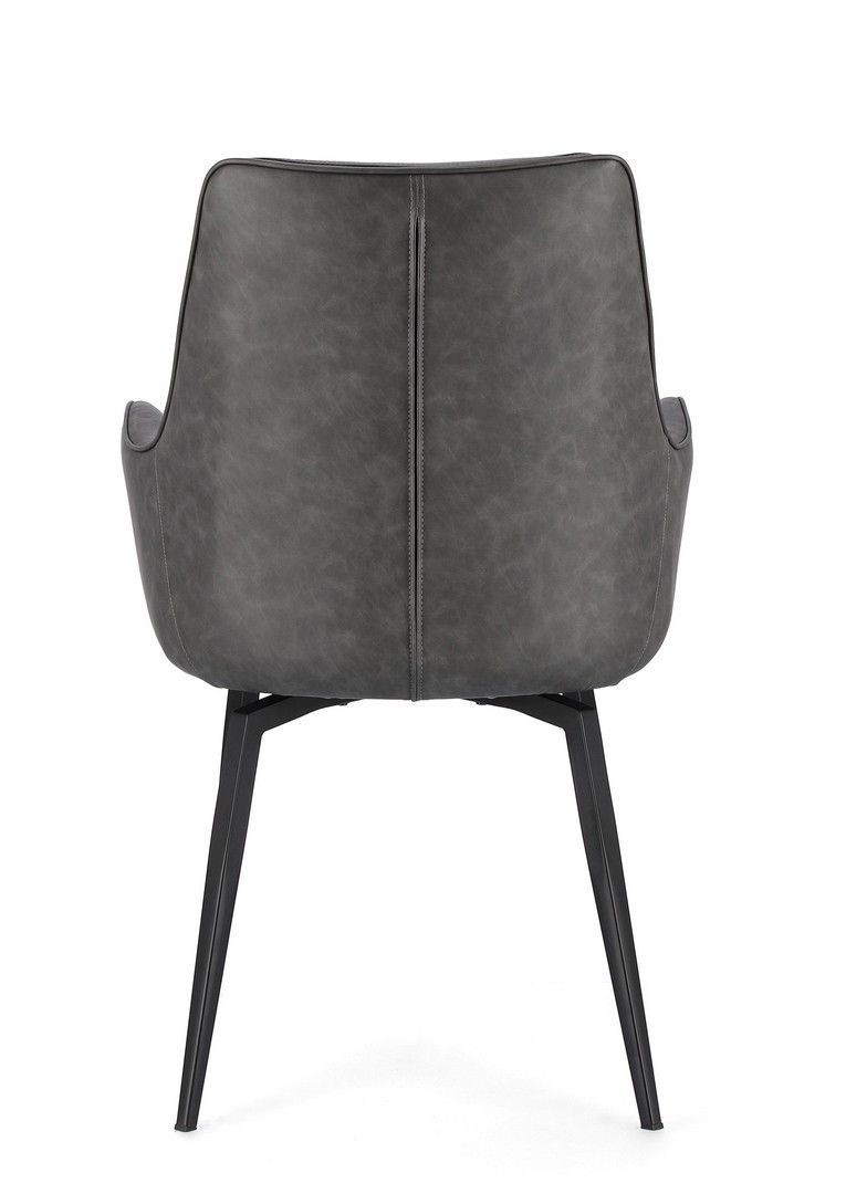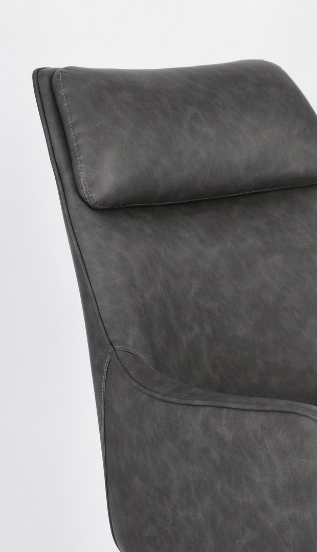 Fotel charakteryzuje się wysokim oparciem, które zapewnia doskonałe podparcie. Stalowe nogi zostały pokryte trwałą farbą proszkową epoksydową (kolor czarny), co gwarantuje stabilność i wyjątkową odporność na uszkodzenia. Całość tapicerowana jest ekoskórą (Ecospelle), która jest trwała, łatwa w pielęgnacji i nadaje meblowi elegancki wygląd.