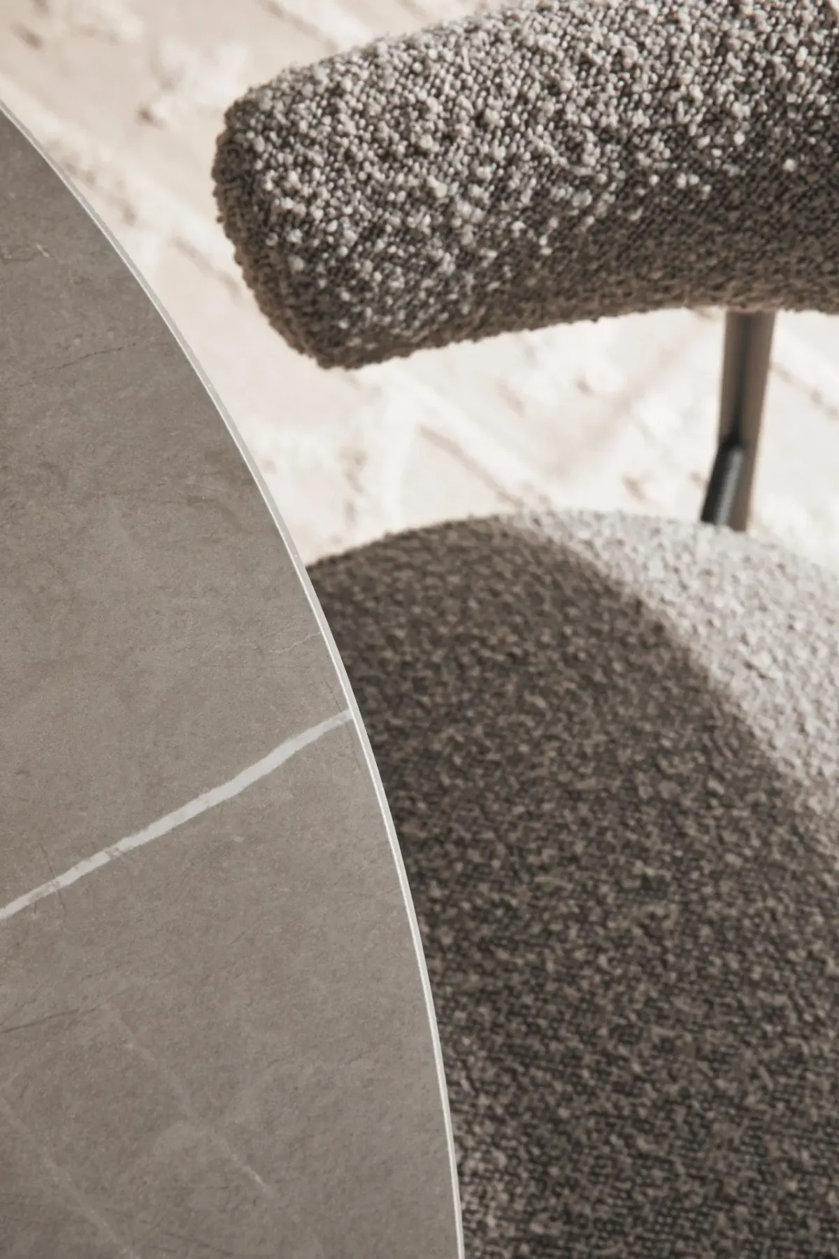 Tapicerka: Siedzisko i oparcie są pokryte teksturowaną tkaniną poliestrową w kolorze SMOKE (Dymna Szarość), wypełnioną miękką pianką poliuretanową.