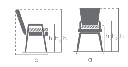 Krzesło ma podłokietniki (h₂ ) i jest idealne do standardowego stołu jadalnianego.
