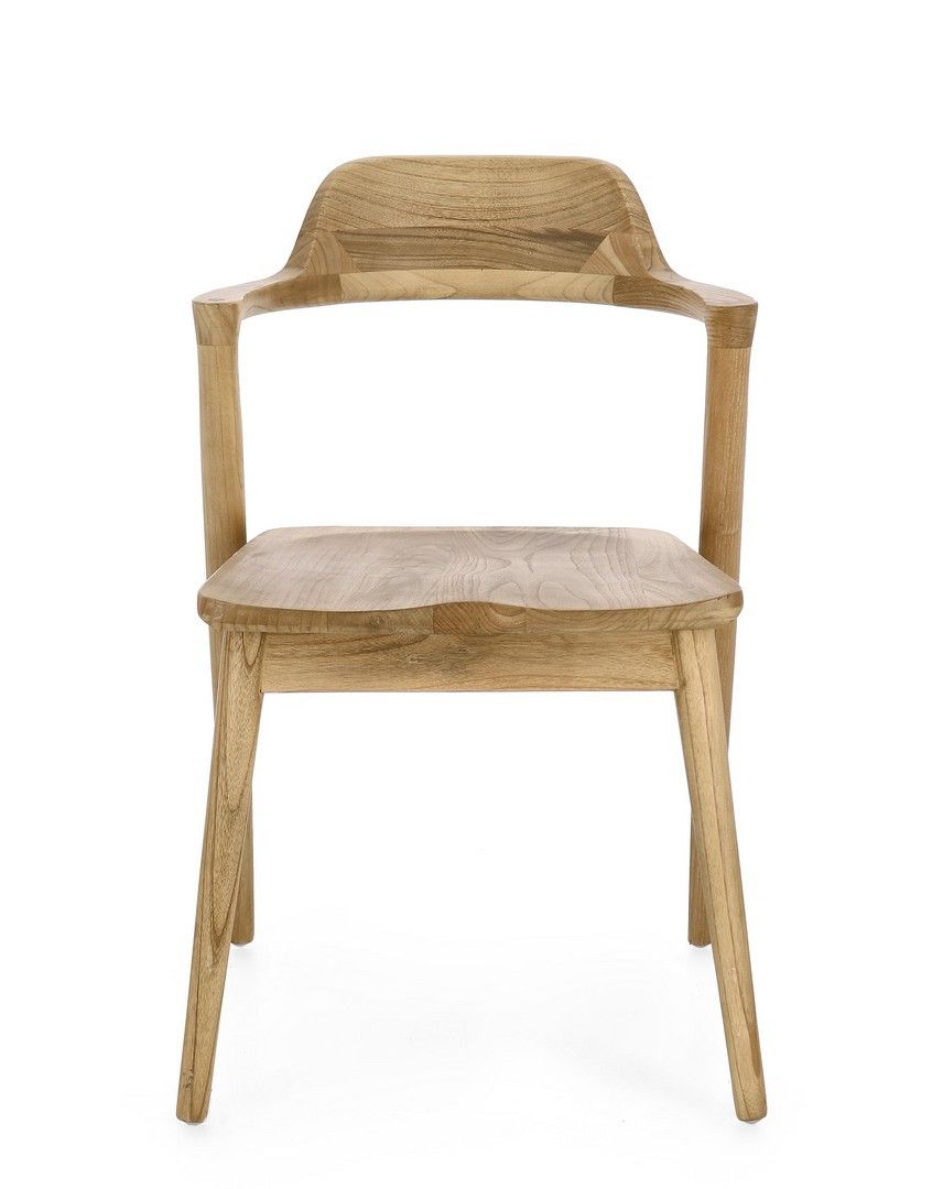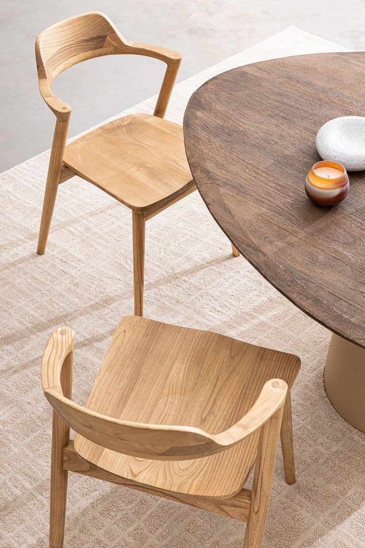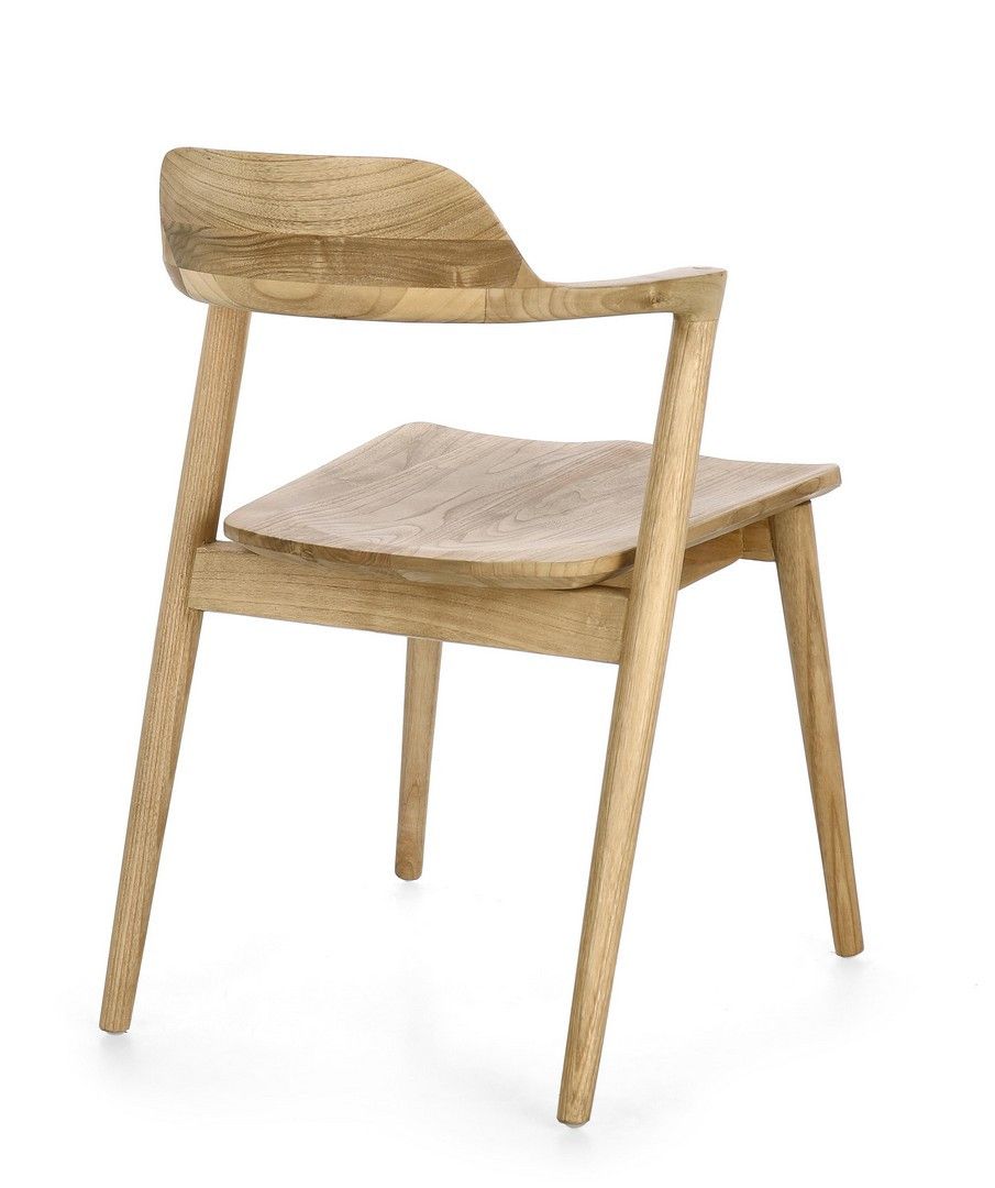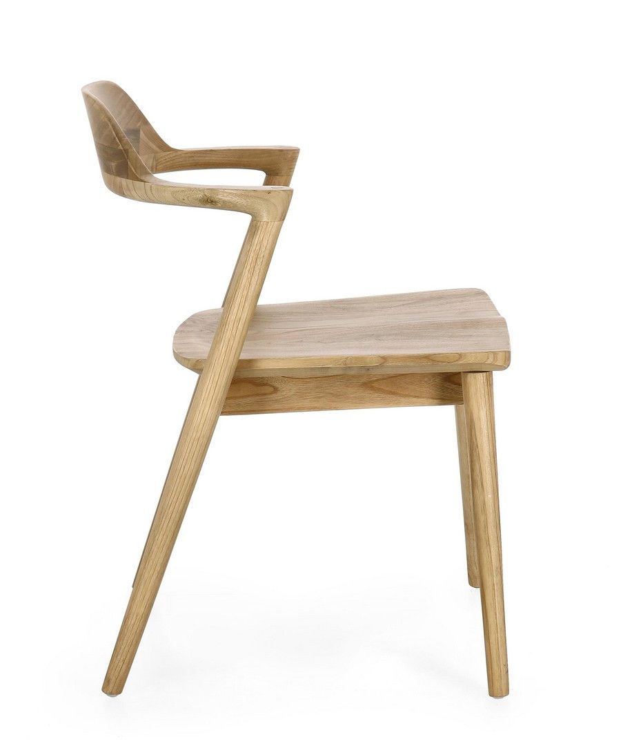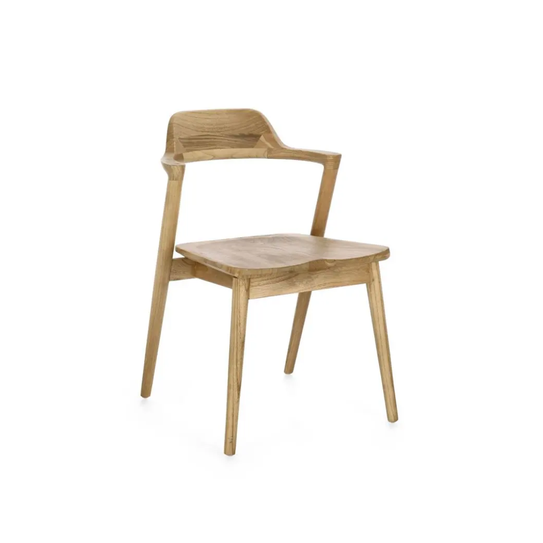 Krzesło wykonane jest z drewna Sungkai (Sungkai wood), charakteryzującego się trwałością i jasną, naturalną barwą. Rama posiada matowe wykończenie lakierem na bazie wody, co jest wyborem ekologicznym i estetycznym. Zintegrowane podłokietniki i proste, organiczne linie nadają krzesłu lekki, nowoczesny charakter.