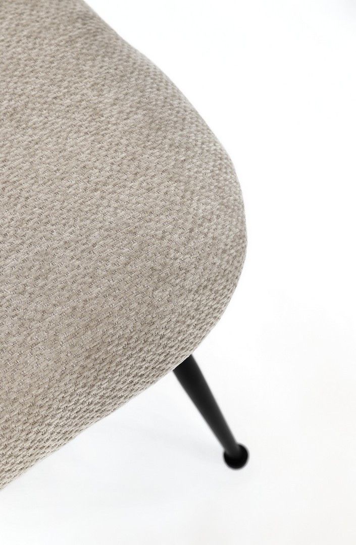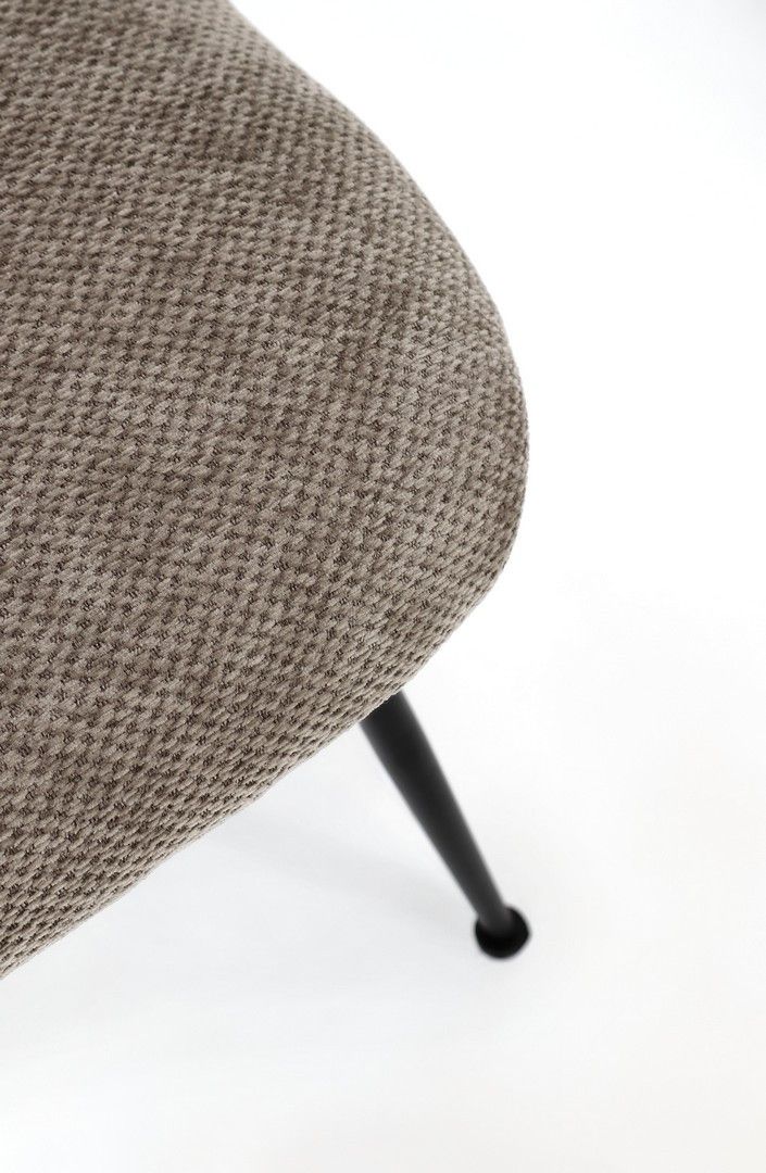Stabilną i trwałą konstrukcję zapewnia rama ze sklejki. Mebel spoczywa na stalowych nogach pokrytych trwałą farbą proszkową. Siedzisko i oparcie są wyściełane i pokryte poliestrową tkaniną z efektem szenilowym (chenille effect). Ta wyjątkowa tekstura, imitująca luksusowy aksamit, nadaje krzesłu głębię i ciepły.