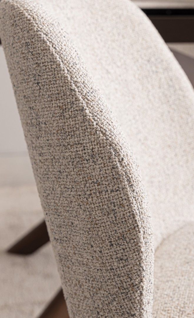 Krzesło LIBBY łączy stabilną konstrukcję z miękką, teksturowaną tkaniną, idealnie wpisując się w estetykę Współczesną (Contemporary).