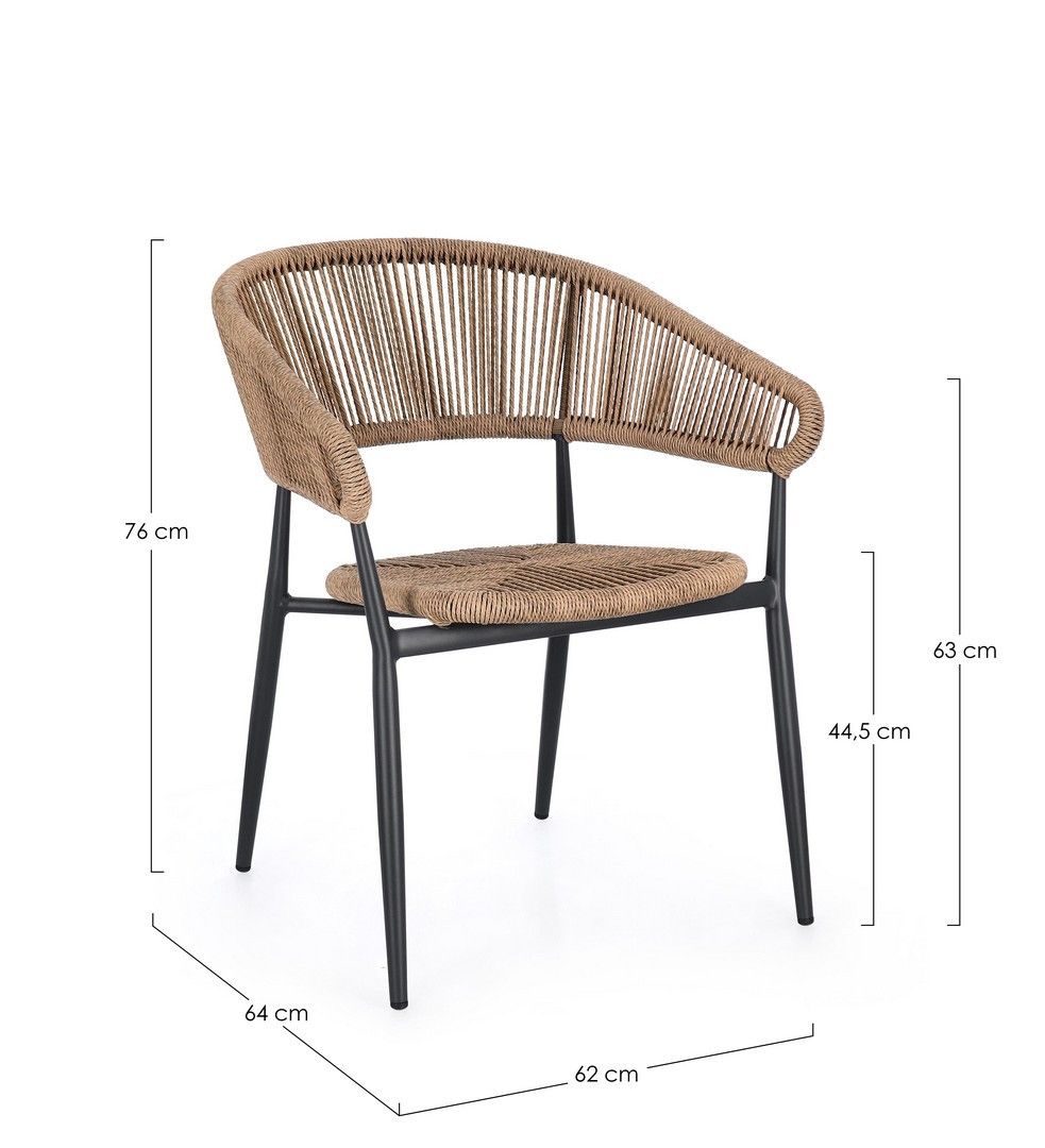 Plecionka: Siedzisko i oparcie wykonano z plecionej liny syntetycznej (Twisted). To trwała plecionka o wyraźnej fakturze, odporna na warunki zewnętrzne.