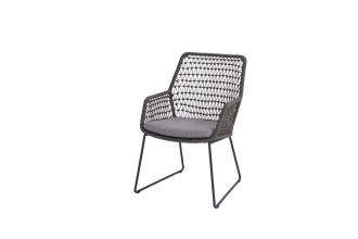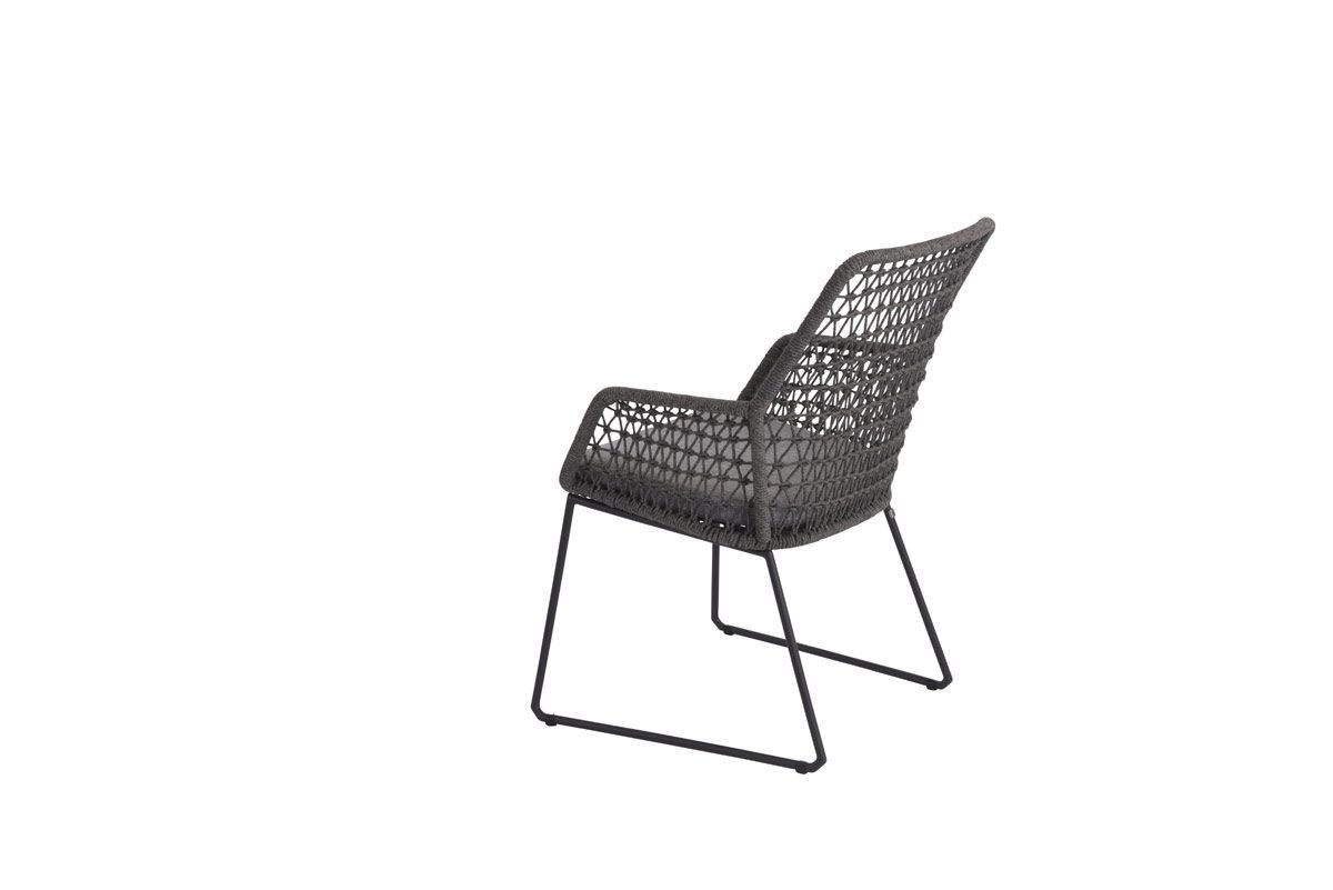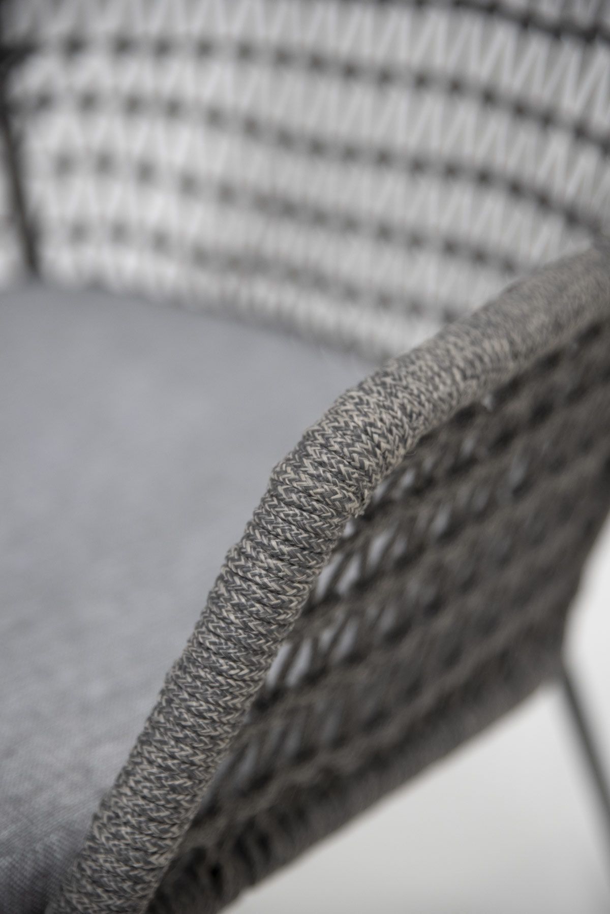 Meble ogrodowe na patio wykonane z 4-sezonowej stali nierdzewnej z powłoką proszkową w kolorze antracytowym. Wycięcia na bokach i podłokietniki wykonane są z polipropylenu, nowoczesnego i eleganckiego materiału.