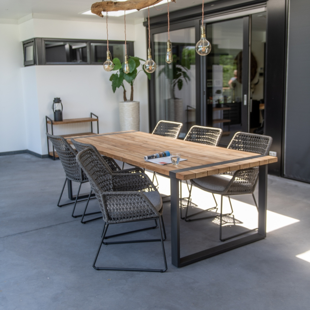 W zestawie stół z blatem z drewna tekowego. Można wykorzystać inne stoły 4SeasonsOutdoor lub zakupić zestaw bez stołu.