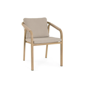 Krzesło KALIMERA to wyjątkowe połączenie stylu i funkcjonalności. Łączy ciepłą estetykę drewna z trwałością aluminium i wygodą, dzięki wodoodpornym, zdejmowanym poduszkom. Idealne na elegancki taras.