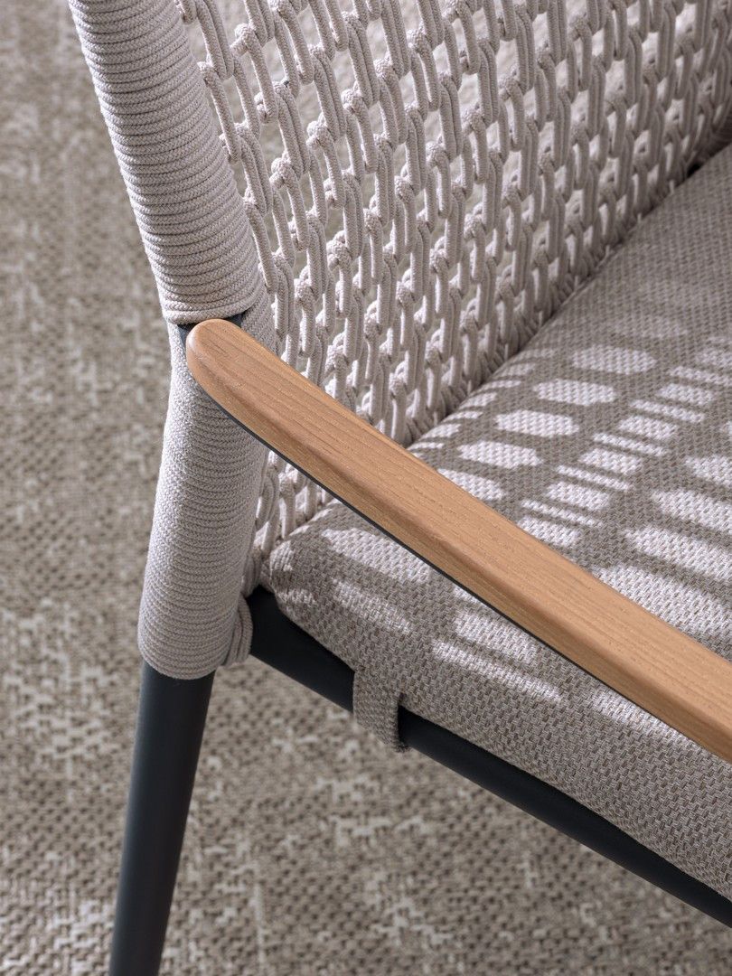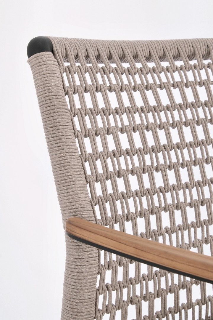 Detale: Podłokietniki mają eleganckie i trwałe wstawki z drewna tekowego, które dodają meblowi naturalnego, luksusowego akcentu.