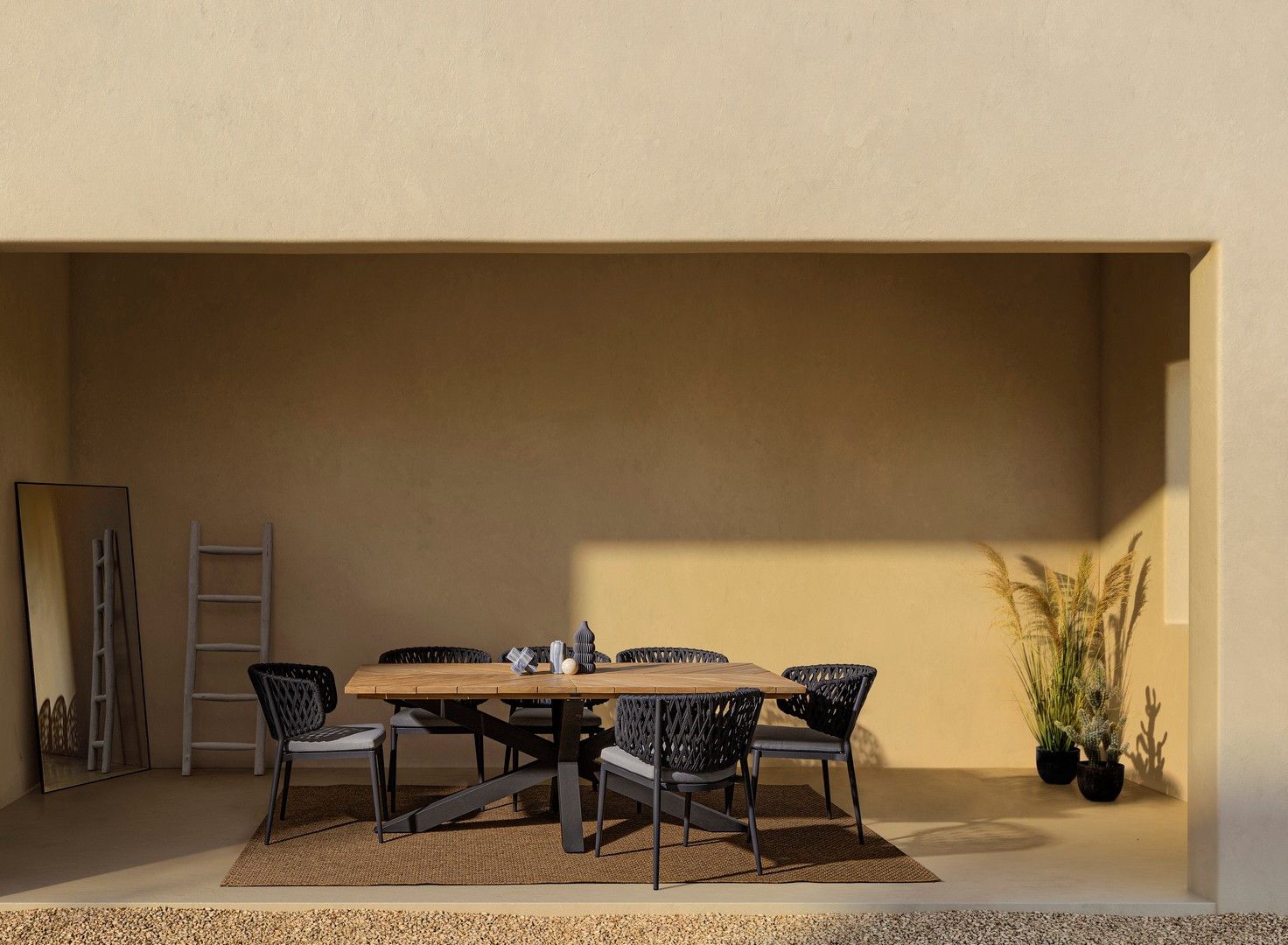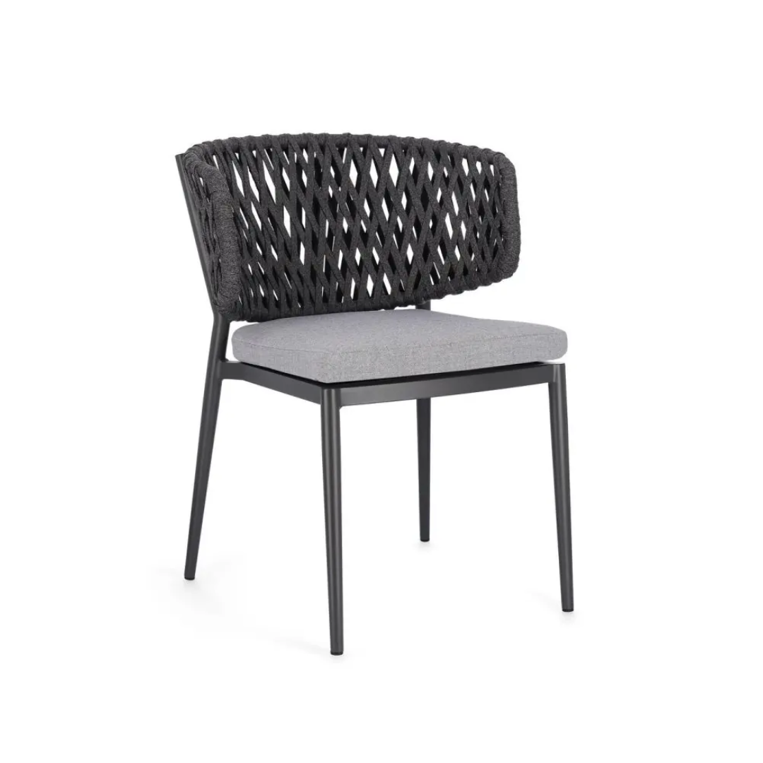 Krzesło NOELIA to idealny wybór na taras, łączący trwałość aluminium z elegancką, teksturowaną liną. Zaprojektowane, by służyć latami na zewnątrz, łączy styl z najwyższą odpornością na warunki atmosferyczne.