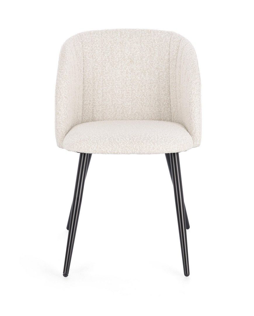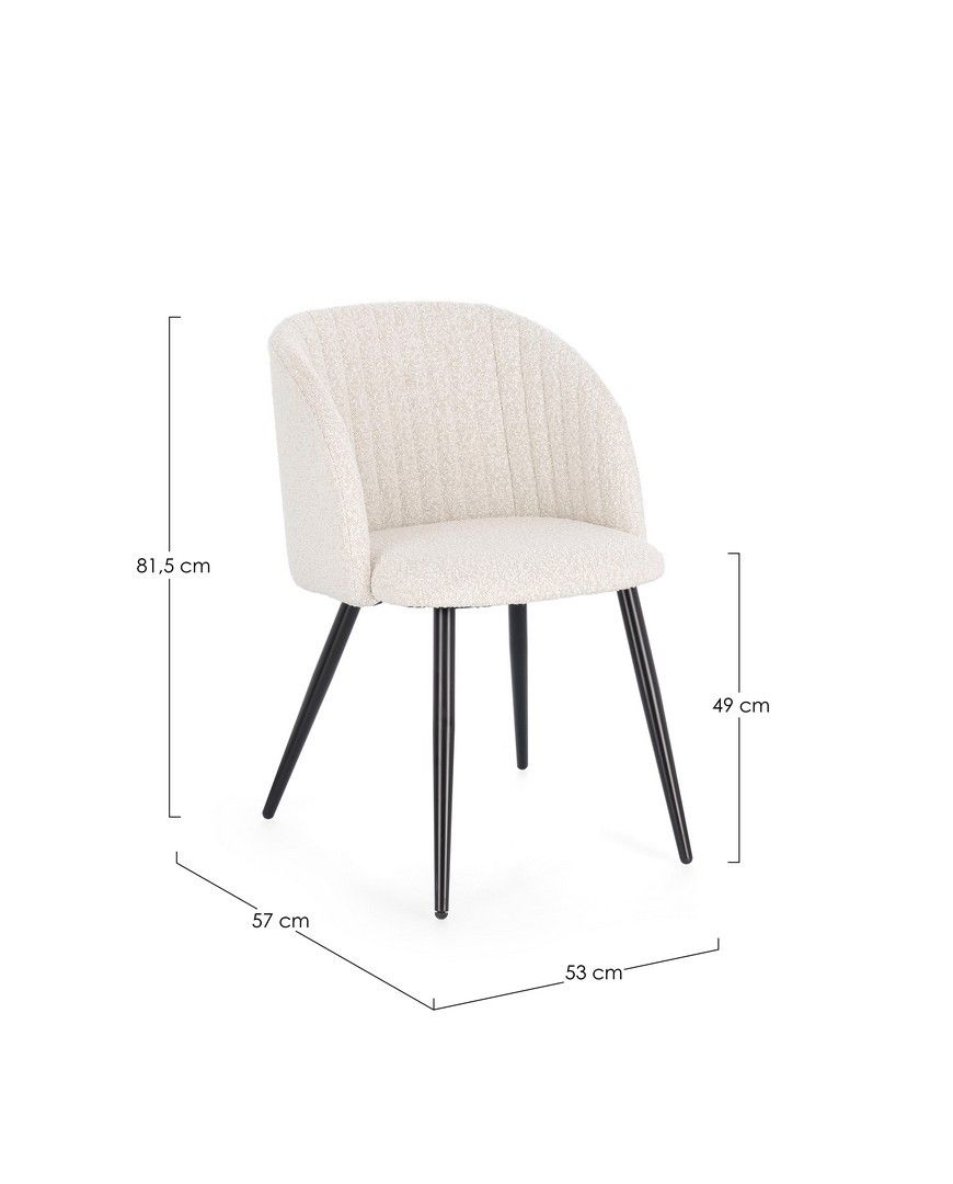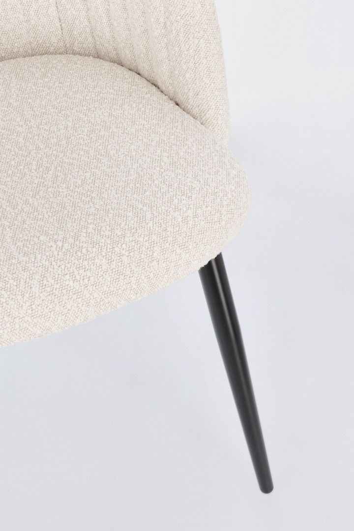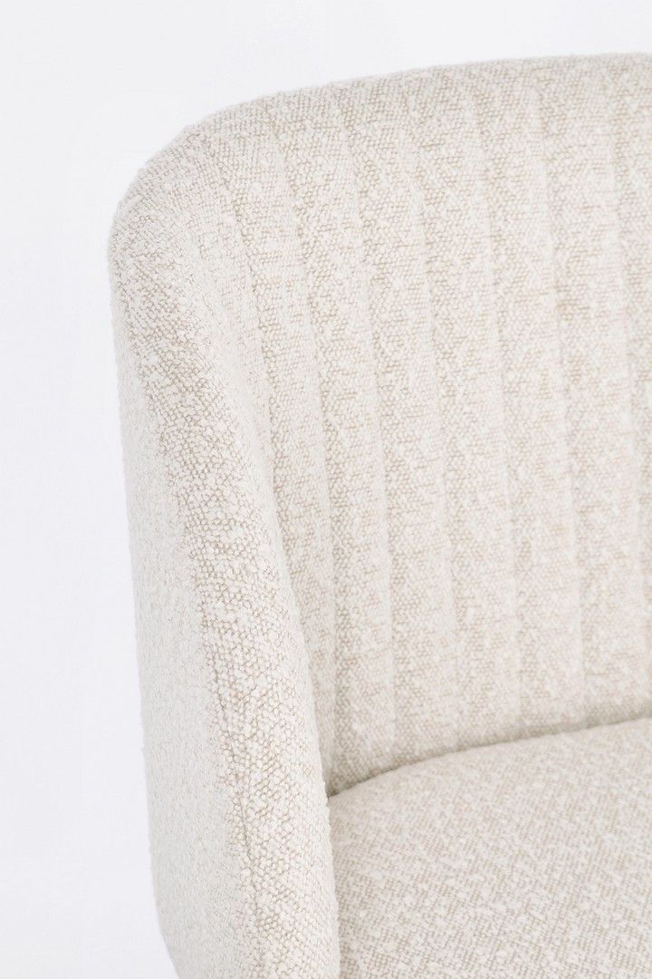Siedzisko jest w całości pokryte modną tkaniną bouclé (95% poliester, 5% akryl) w eleganckim odcieniu kości słoniowej (Ivory). Ta unikalna, fakturowana tkanina nadaje krzesłu luksusowy i wyjątkowo przytulny charakter.
