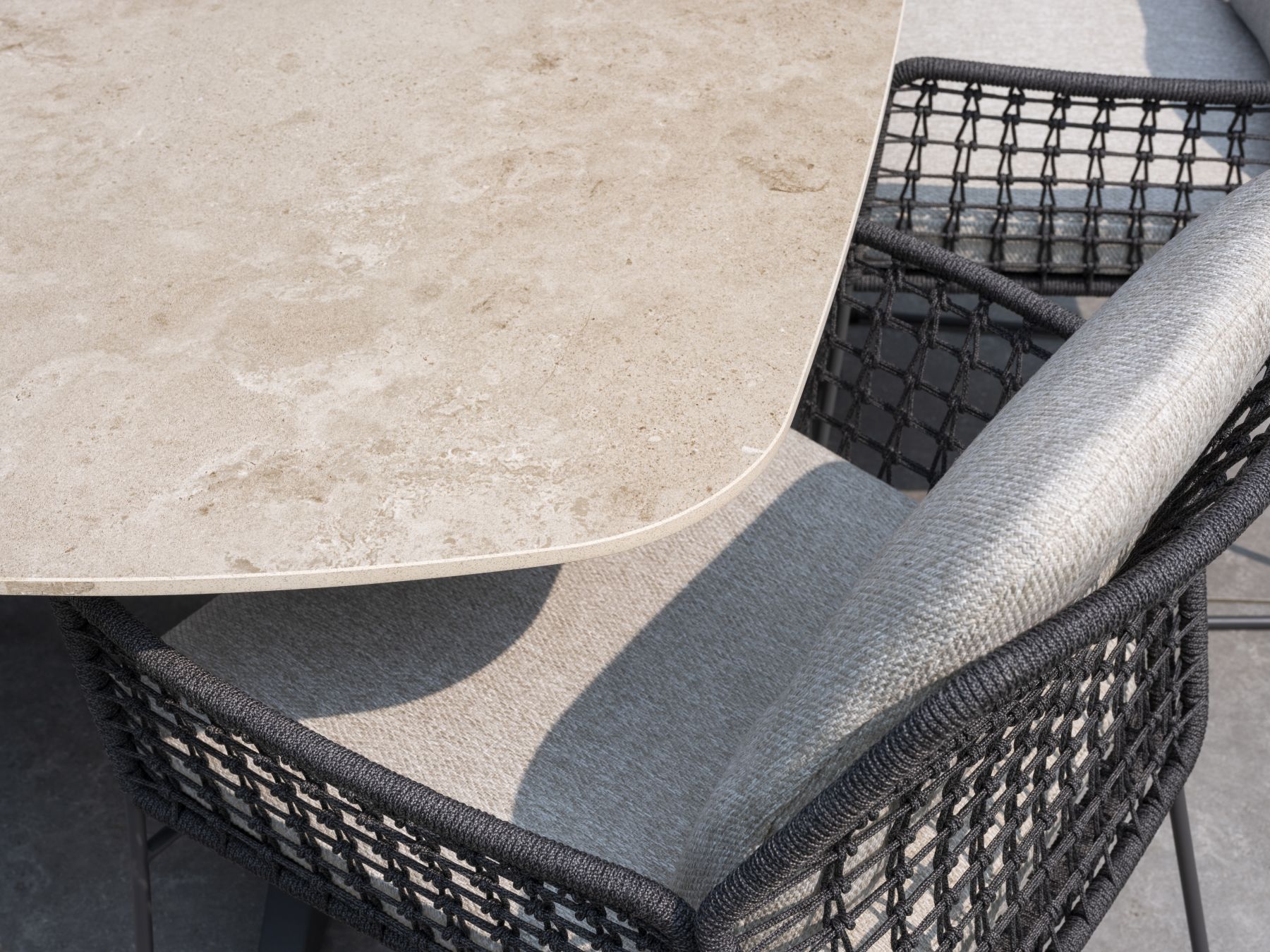 - Wysokiej jakości materiały: Krzesło wykonane z rope oraz ramy z RVS (stali nierdzewnej) pokrytej powłoką proszkową w kolorze antracytowym, co zapewnia trwałość i odporność na warunki atmosferyczne.