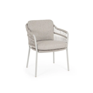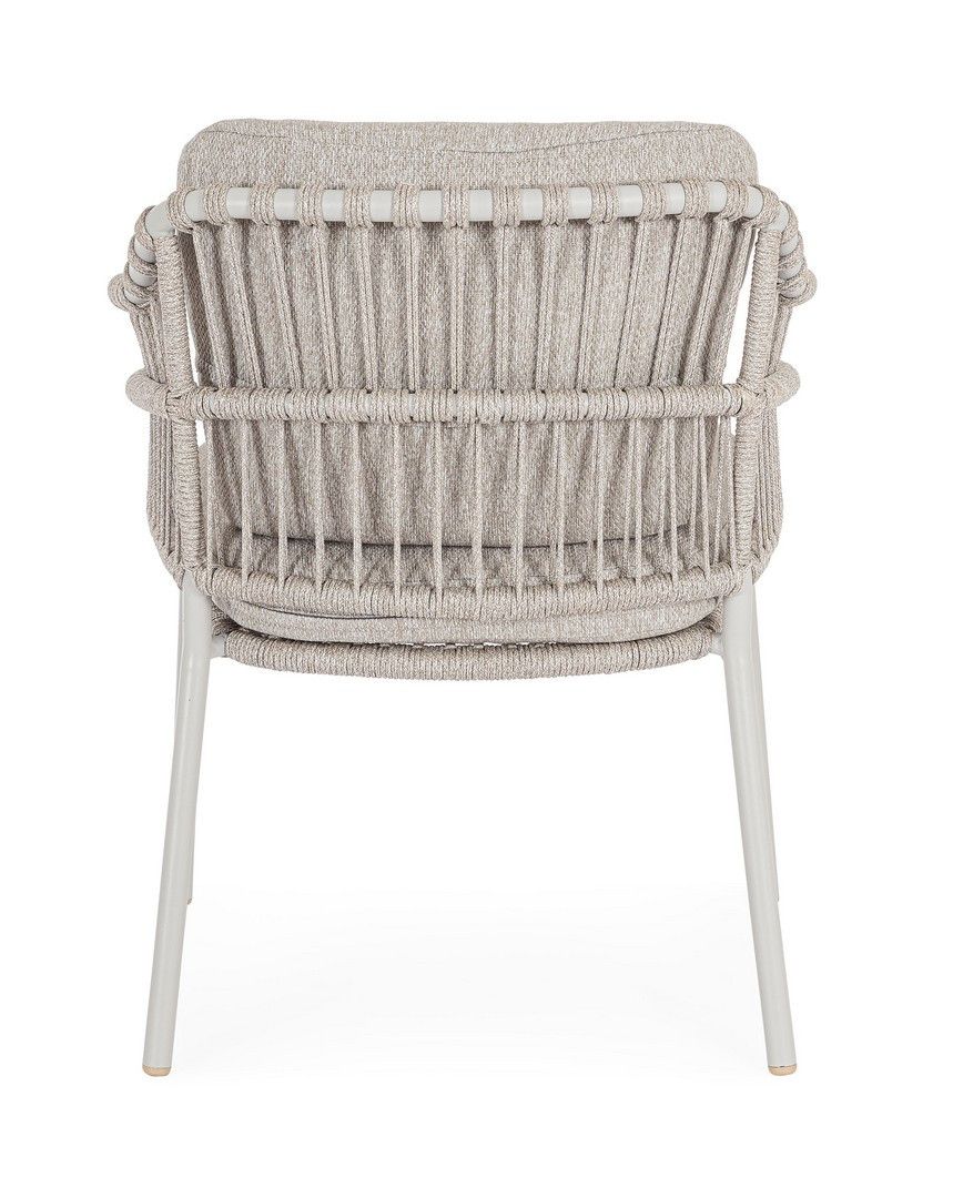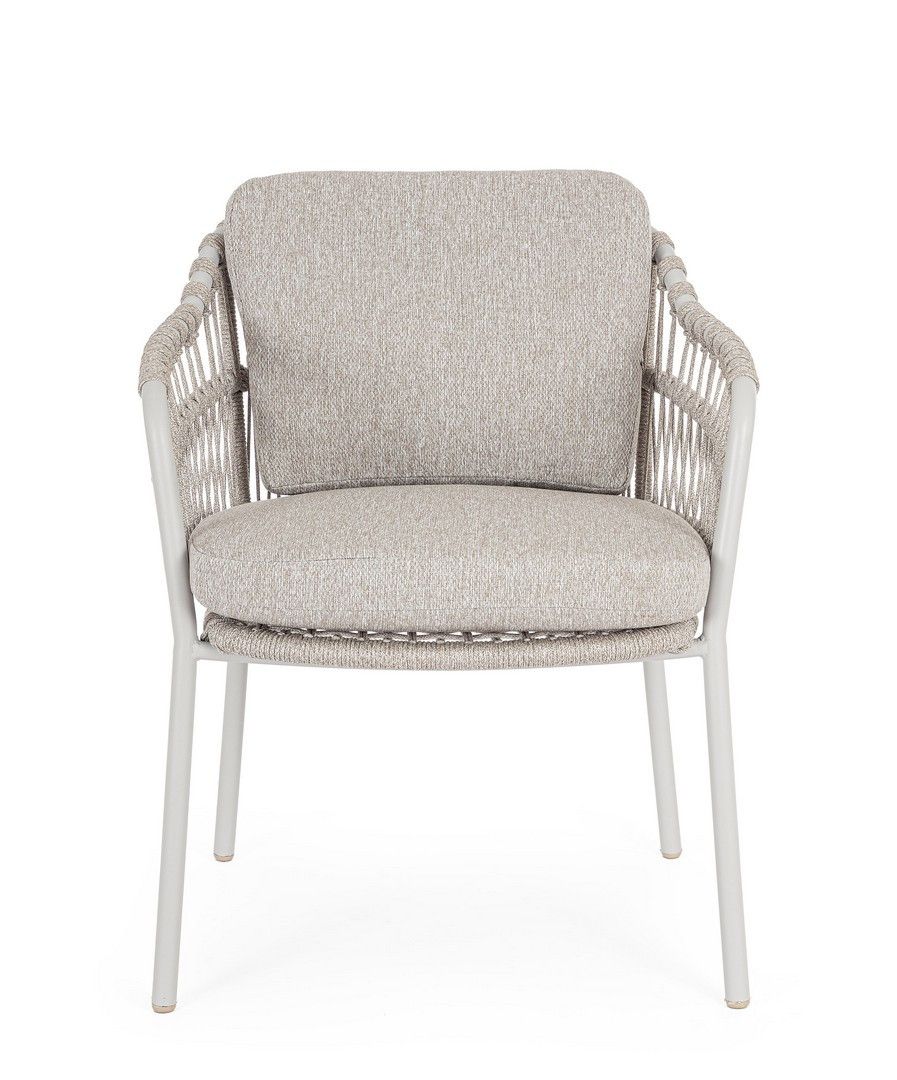Fotel TALAIA FROSTY to synonim luksusu i trwałości. Dzięki konstrukcji ze stali nierdzewnej i tkaninie Sunproof, jest to mebel odporny na warunki atmosferyczne, idealny do ogrodu lub na taras.