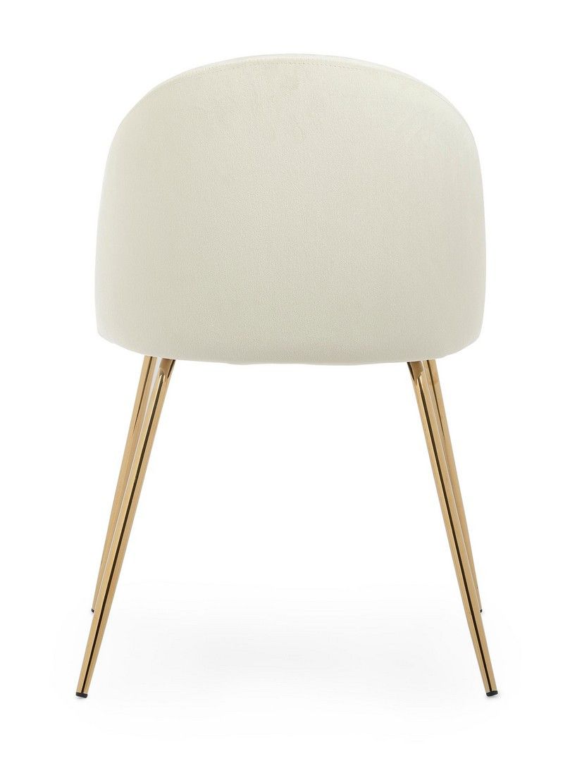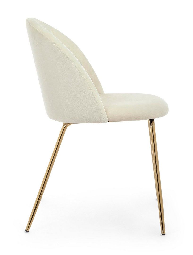 Urok krzesła TANYA tkwi w lśniących detalach. Mebel spoczywa na eleganckich, stalowych nogach rurowych wykończonych złotym chromem. To połączenie zapewnia stabilność i stanowi mocny, dekoracyjny akcent we wnętrzu.