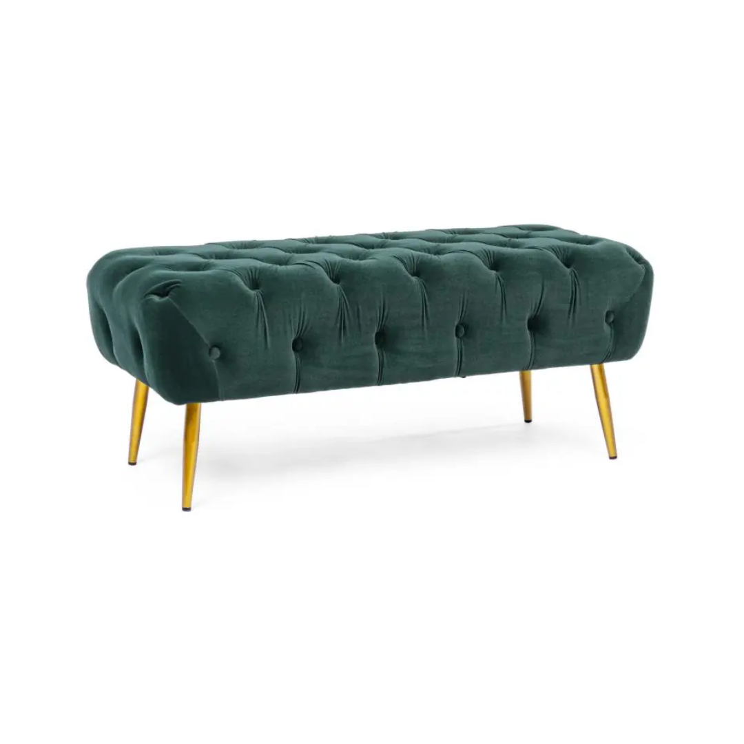 Ławka GIACINTA to synonim luksusowego stylu Glamour. Łączy miękki, aksamitny welur z eleganckim pikowaniem Capitonné, tworząc wyjątkowo prestiżowy mebel.
