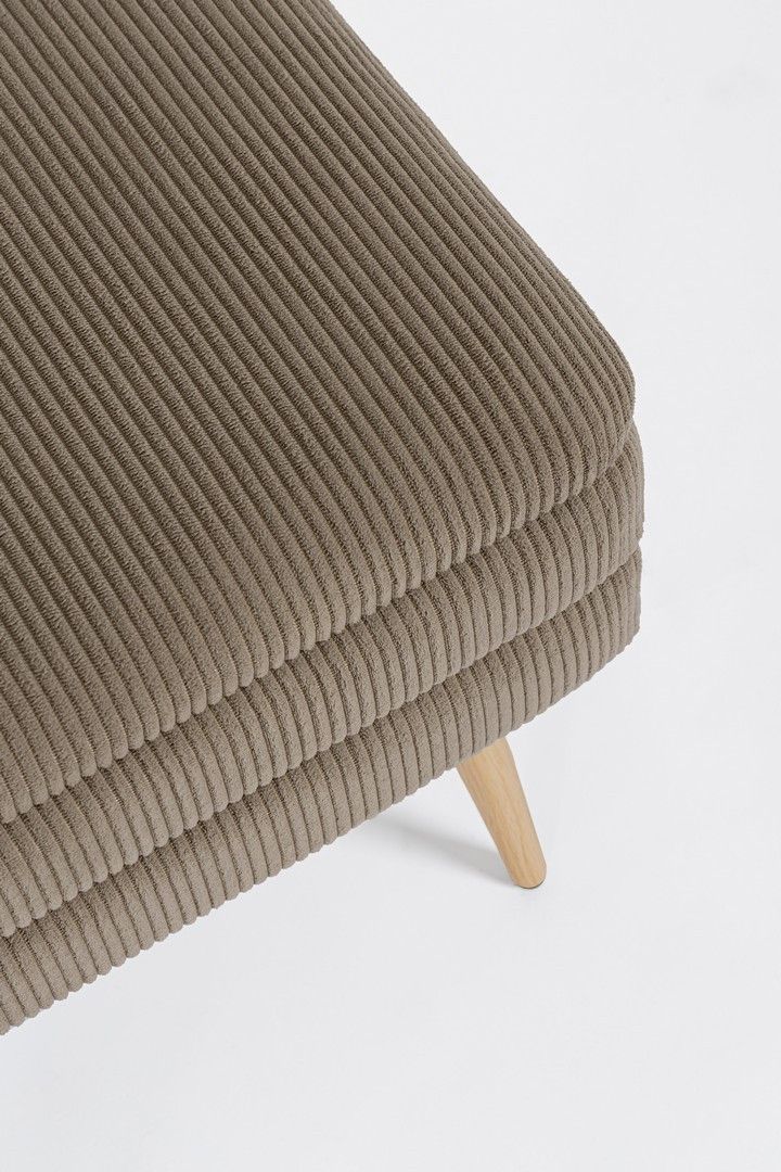 Mebel ma stabilną konstrukcję z płyty MDF. Całość pokrywa wytrzymała tkanina poliestrowa.
