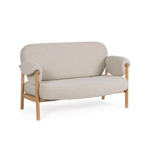 Mebel ma solidny stelaż z drewna brzozowego, który jest wyeksponowany i nadaje sofie ciepłego, naturalnego charakteru. Siedzisko i oparcie pokrywa miękka, teksturowana tkanina poliestrowa w kolorze Naturalnego Beżu.