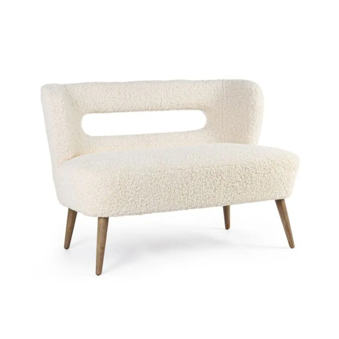 Cechą charakterystyczną jest owalny, horyzontalny otwór w oparciu, który nadaje sofie lekkości i nowoczesnego, awangardowego charakteru, przyciągając wzrok.
