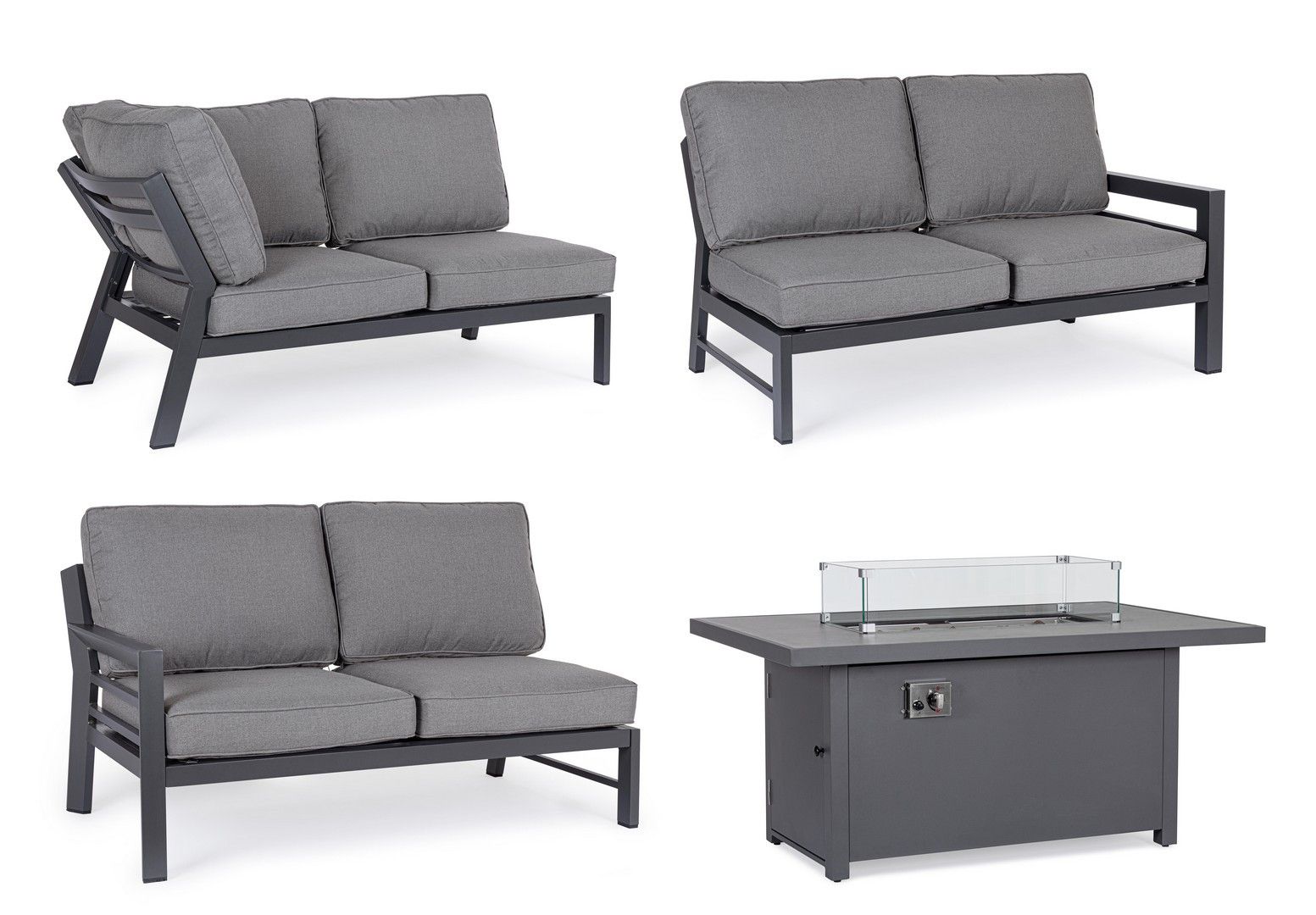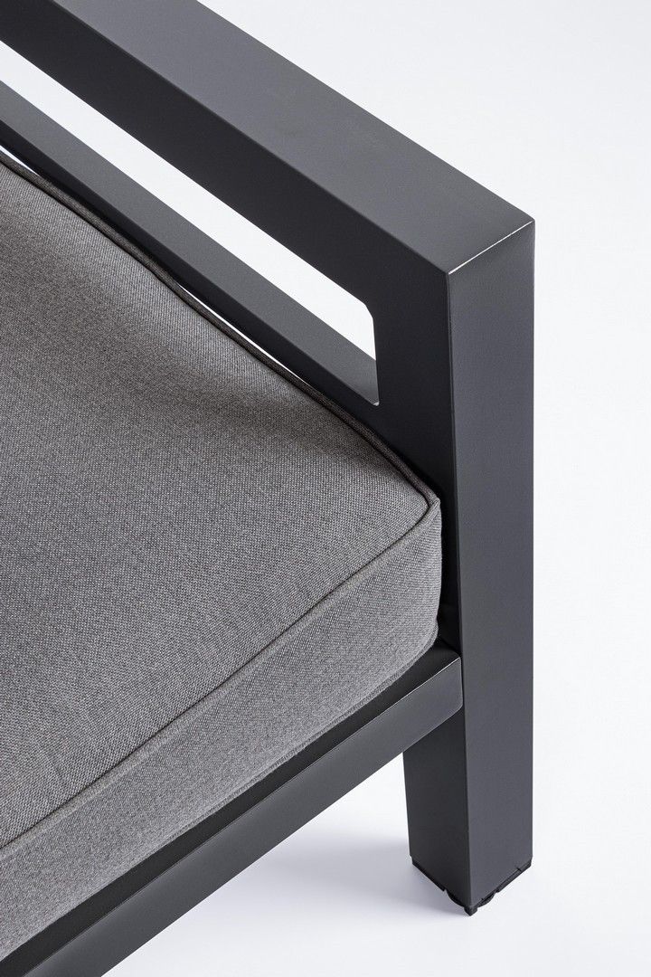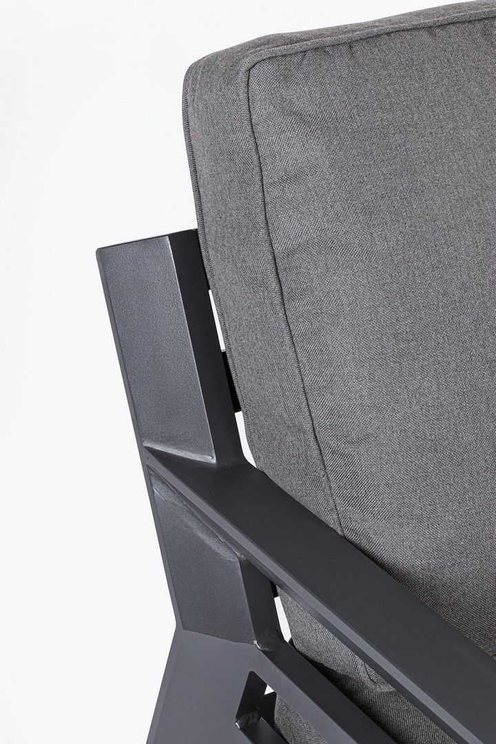 Zestaw składa się z trzech modułów wypoczynkowych tworzących narożnik. Rama jest wykonana z lekkiego aluminium malowanego proszkowo w kolorze CHARCOAL (Antracyt).