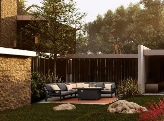 HENDRIX: luksusowy narożnik outdoor z paleniskiem gazowym