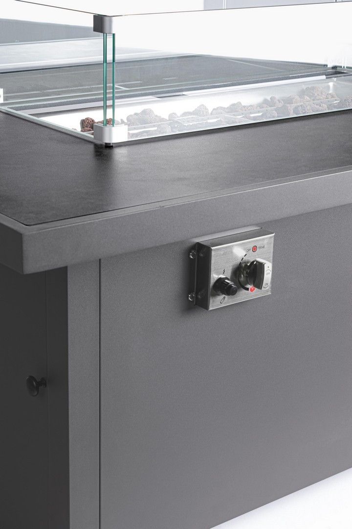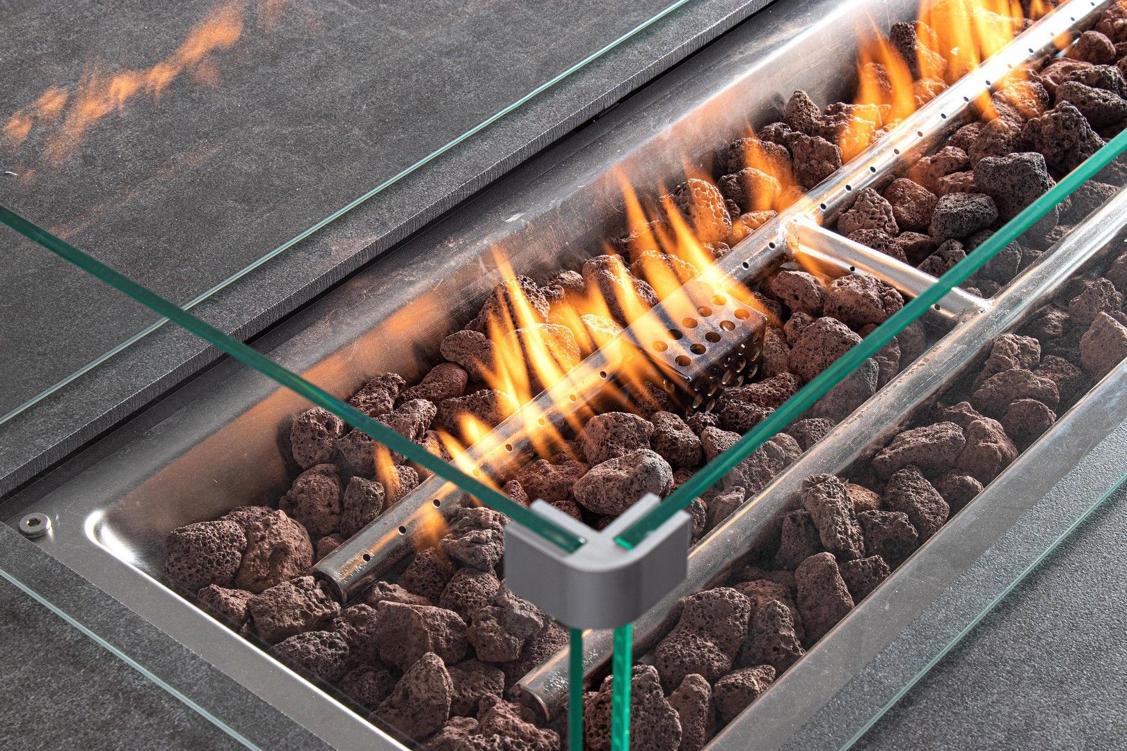 Palenisko: Zintegrowany, centralny gazowy kominek (Fire Pit) o maksymalnej mocy 14.7 kWh z palnikiem ze stali nierdzewnej