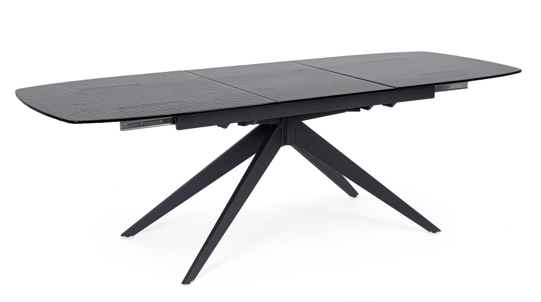 Stół Anja od włoskiego producenta Bizzotto to połączenie nowoczesnego designu z wyrafinowaną prostotą. Jego nieregularny, hartowany blat ze szkła o strukturze nadaje całości wyjątkowego charakteru, a zaoblone rogi zapewniają komfort i bezpieczeństwo podczas codziennego użytkowania.