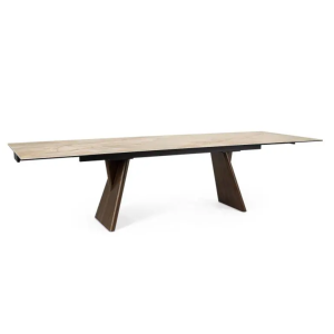 Stół Maikki Walnut/Onyx od włoskiego producenta Bizzotto to wyjątkowe połączenie elegancji i praktyczności. Prostokątny blat wykonany jest z ceramiki o efekcie polerowanego onyksu połączonej z hartowanym szkłem, co nadaje mu luksusowego wyglądu i niezwykłej trwałości.