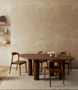 Stół Sanat od włoskiego producenta Bizzotto łączy naturalne piękno drewna z nowoczesnym, minimalistycznym designem. Prostokątny blat i konstrukcja wykonane są z litego drewna mango, wykończonego lakierem wodnym, który podkreśla strukturę drewna i zapewnia trwałość.