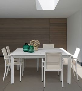 Stół KONNOR WHITE to połączenie nowoczesnej formy i wysokiej funkcjonalności. Wykonany z aluminium malowanego proszkowo, zachwyca trwałością oraz odpornością na warunki atmosferyczne, dzięki czemu doskonale sprawdzi się zarówno w przestrzeni jadalnianej, jak i w ogrodzie czy na tarasie.