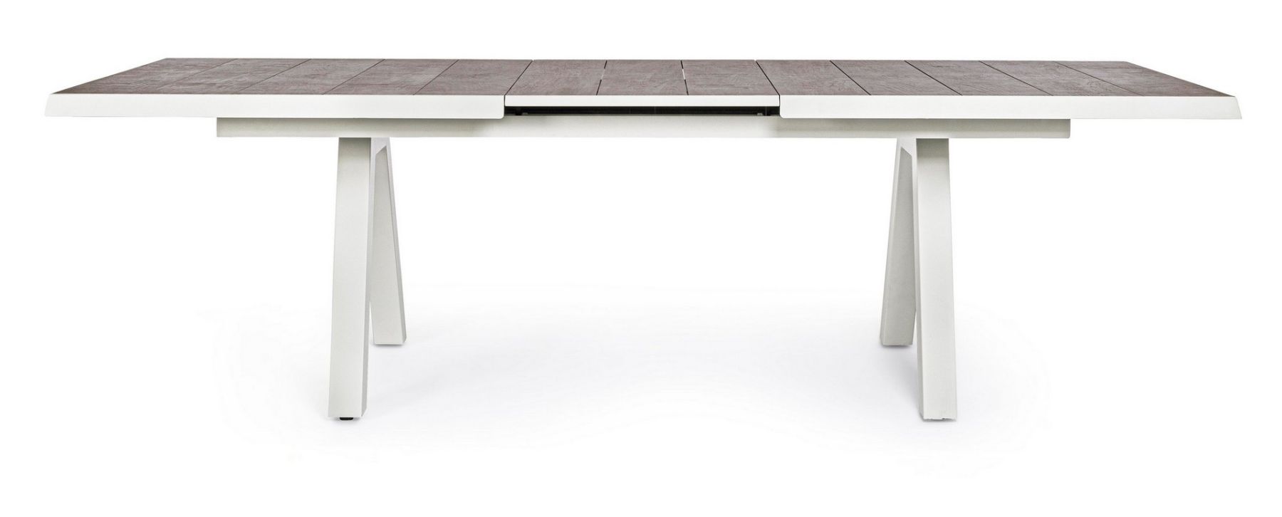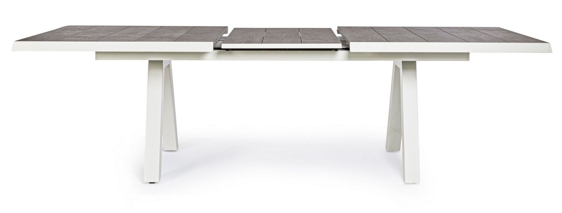 Blat wykonany z ceramiki o grubości 10 mm zachwyca jasnym, subtelnym odcieniem inspirowanym naturalnym kamieniem. Jest wyjątkowo odporny na zarysowania, wilgoć i wysokie temperatury, co sprawia, że stół będzie służył przez lata bez utraty eleganckiego wyglądu.