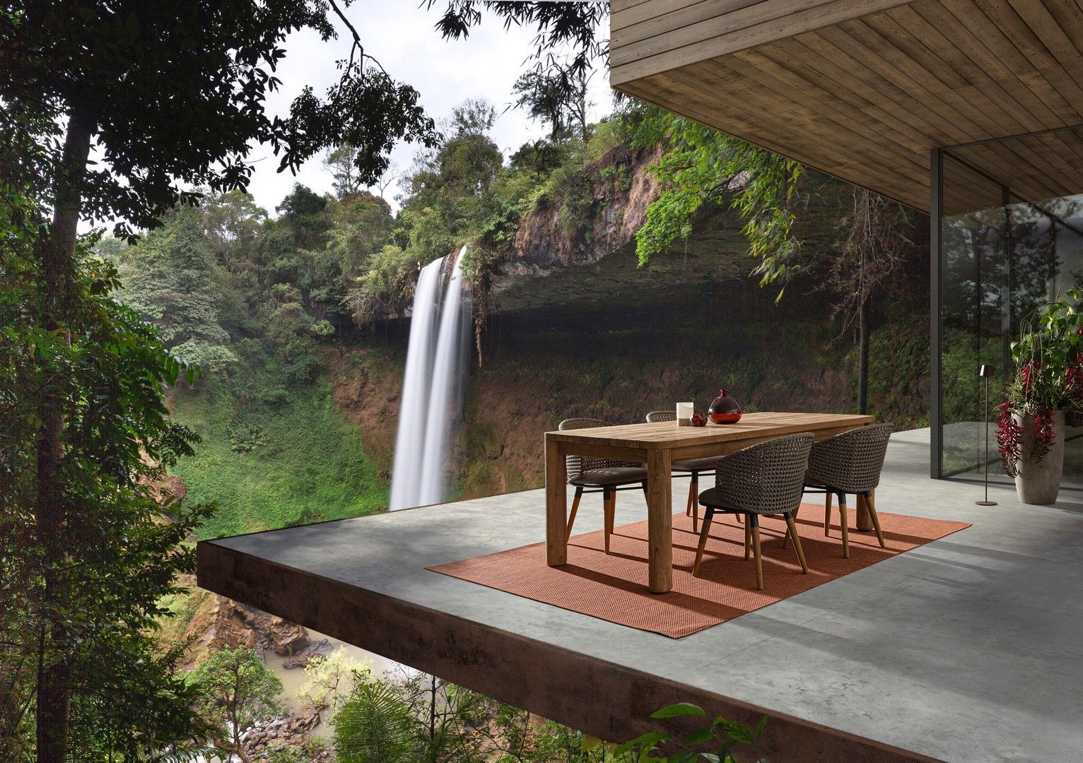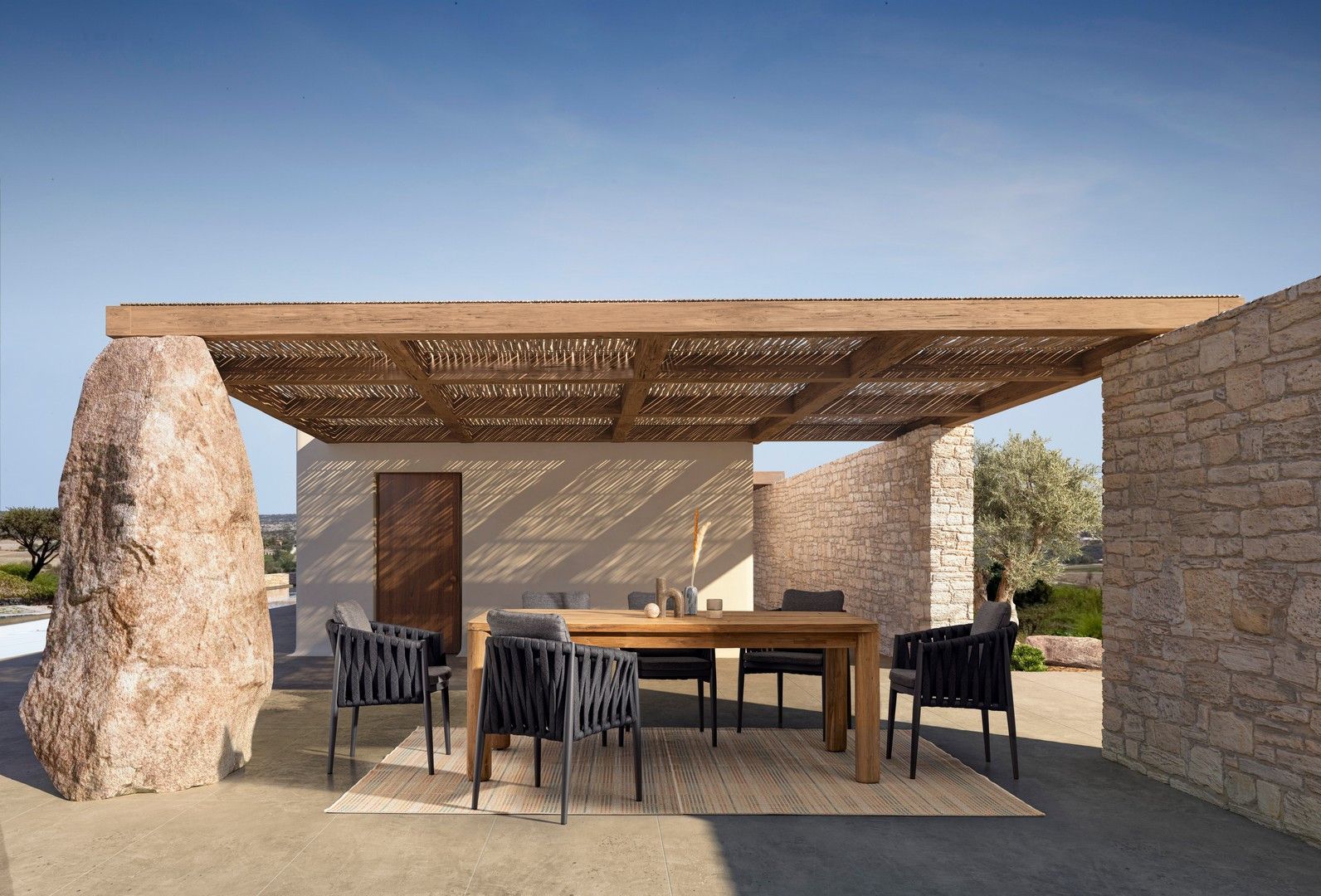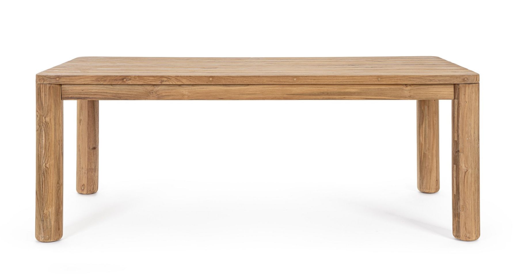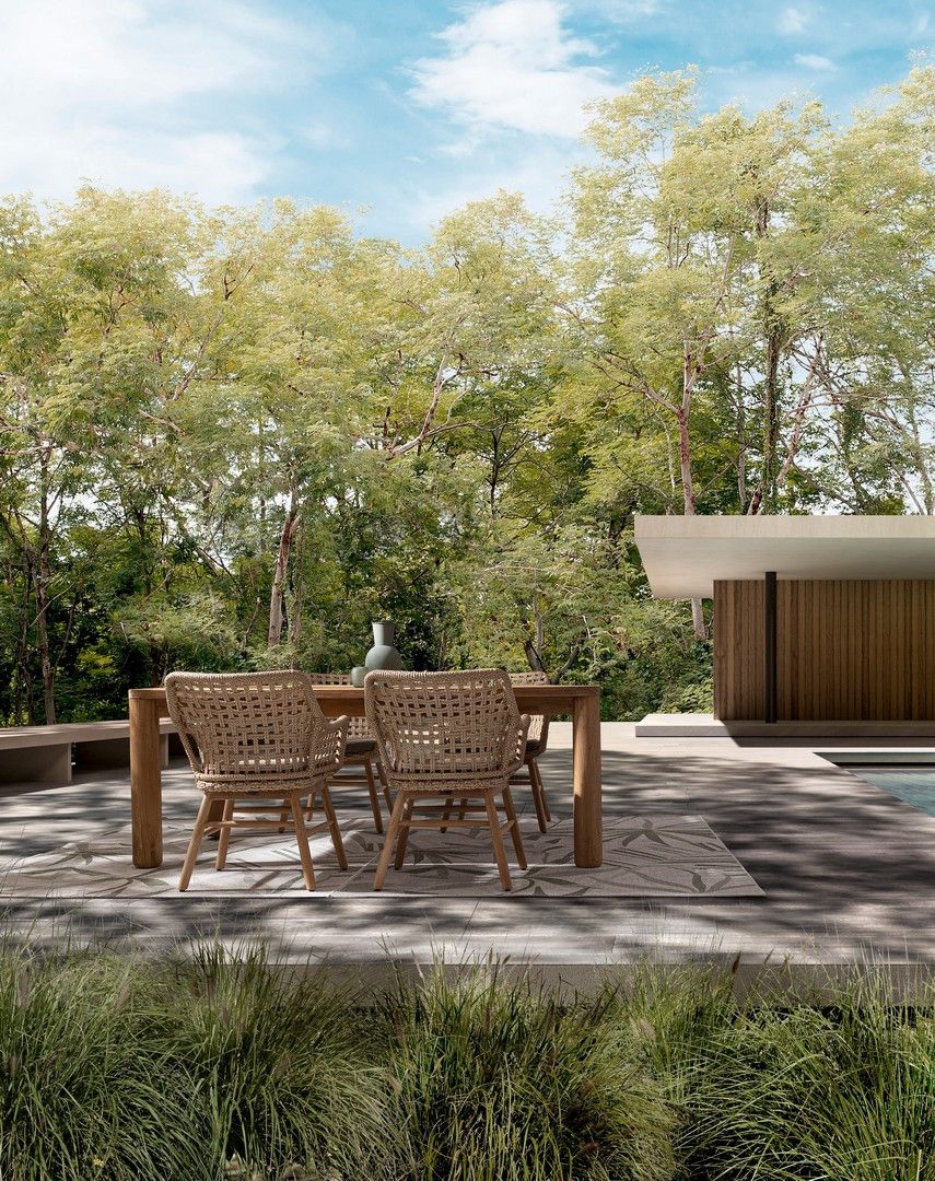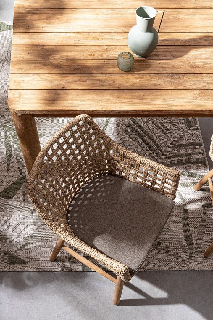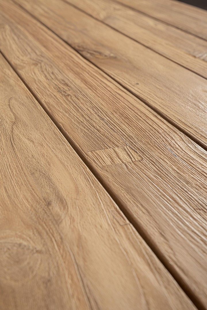 Stół MAVERICK to wyjątkowy model wykonany w całości z recyklingowanego drewna tekowego pochodzącego z certyfikowanych, zrównoważonych źródeł (SVLK). Naturalne, szczotkowane wykończenie pięknie podkreśla usłojenie i strukturę drewna, nadając meblowi ciepły, autentyczny charakter.