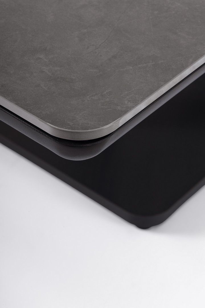 Blat z kamienia spiekanego (naturalny kamień obrabiany w wysokiej temperaturze) o grubości 11 mm zachwyca eleganckim grafitowym odcieniem charcoal, dodając całości nowoczesnego charakteru. Stół wyposażono w regulowany system wysokości (51-72 cm), który pozwala łatwo dopasować blat do różnych potrzeb - od niskiego stolika kawowego po standardowy stół jadalniany.