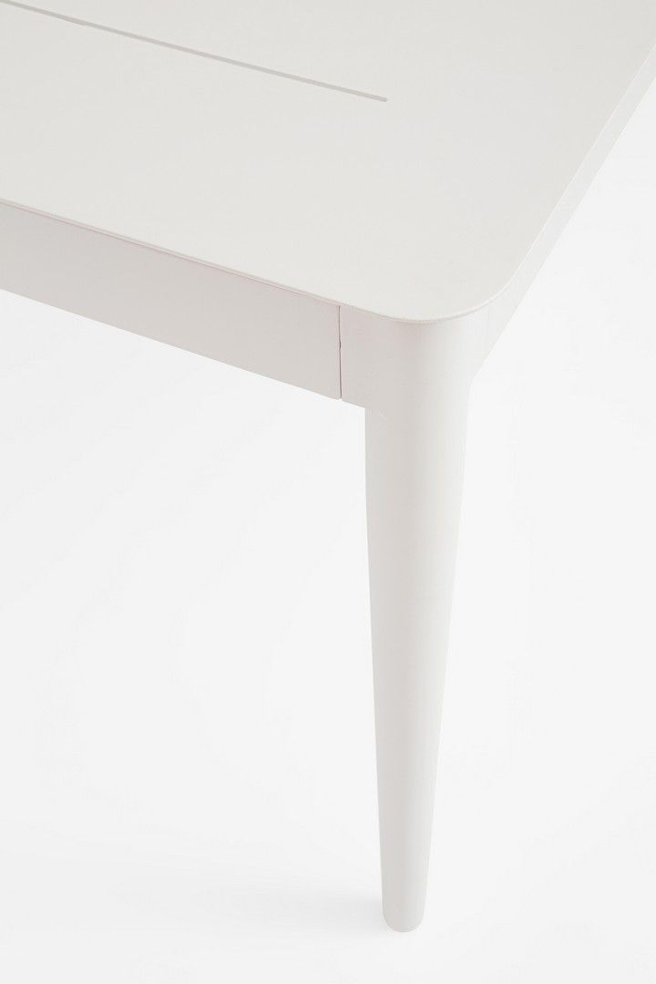 Blat stołu jest w jednolitej, białej kolorystyce, która wprowadza świeżość i lekkość do każdej aranżacji. Dzięki automatycznemu mechanizmowi rozkładania typu „butterfly” stół można wygodnie wydłużyć z 200 cm do 300 cm, oferując komfortowe miejsce dla większej liczby osób.