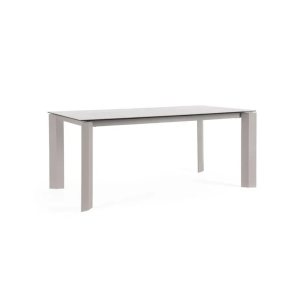 Stół marki Bizzotto to elegancki i funkcjonalny wybór do grodu zimowego lub przestrzeni zewnętrznych. Dzięki solidnej konstrukcji z aluminium pokrytego proszkowo oraz ceramicznemu blatowi na szklanej bazie (o grubości 9 mm), mebel zachwyca trwałością i stylowym wyglądem.