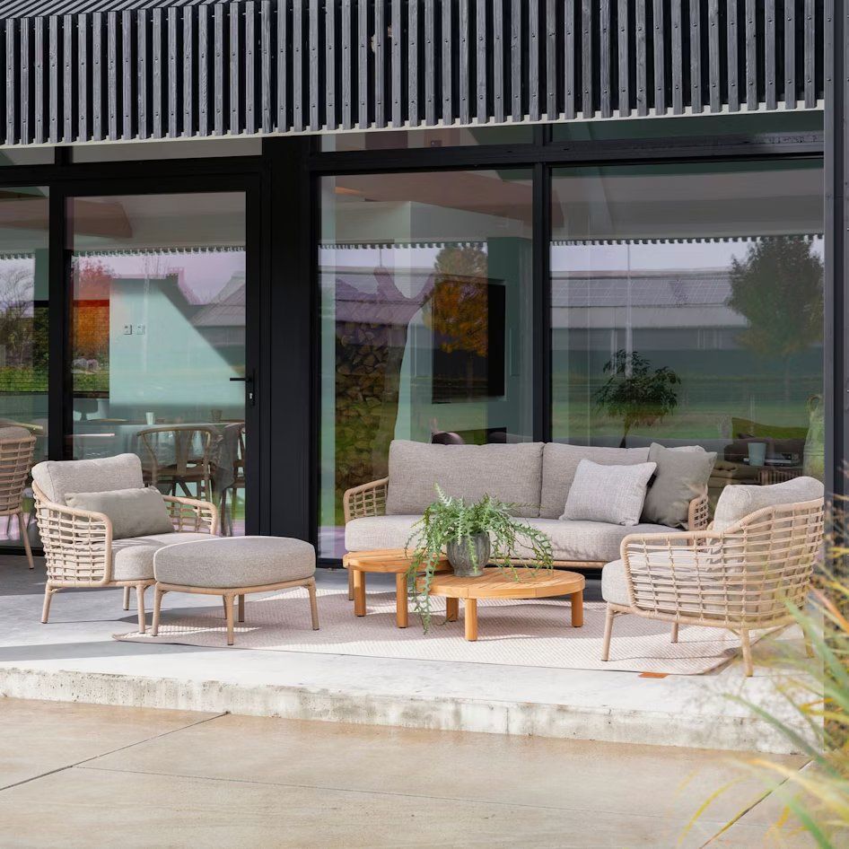Usiądź i zrelaksuj się, tak jak nad malowniczym jeziorem Como. Zestaw kawowy Como zapewnia idealne miejsce do odpoczynku na świeżym powietrzu, łącząc w sobie komfort i elegancję. Naturalne odcienie oraz unikalne plecionki w stylu „harvest” nadają meblom wyjątkowego charakteru.