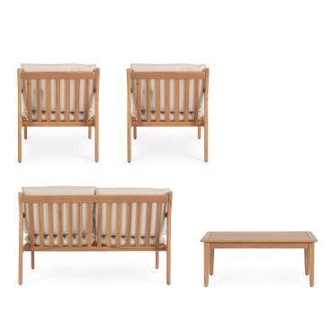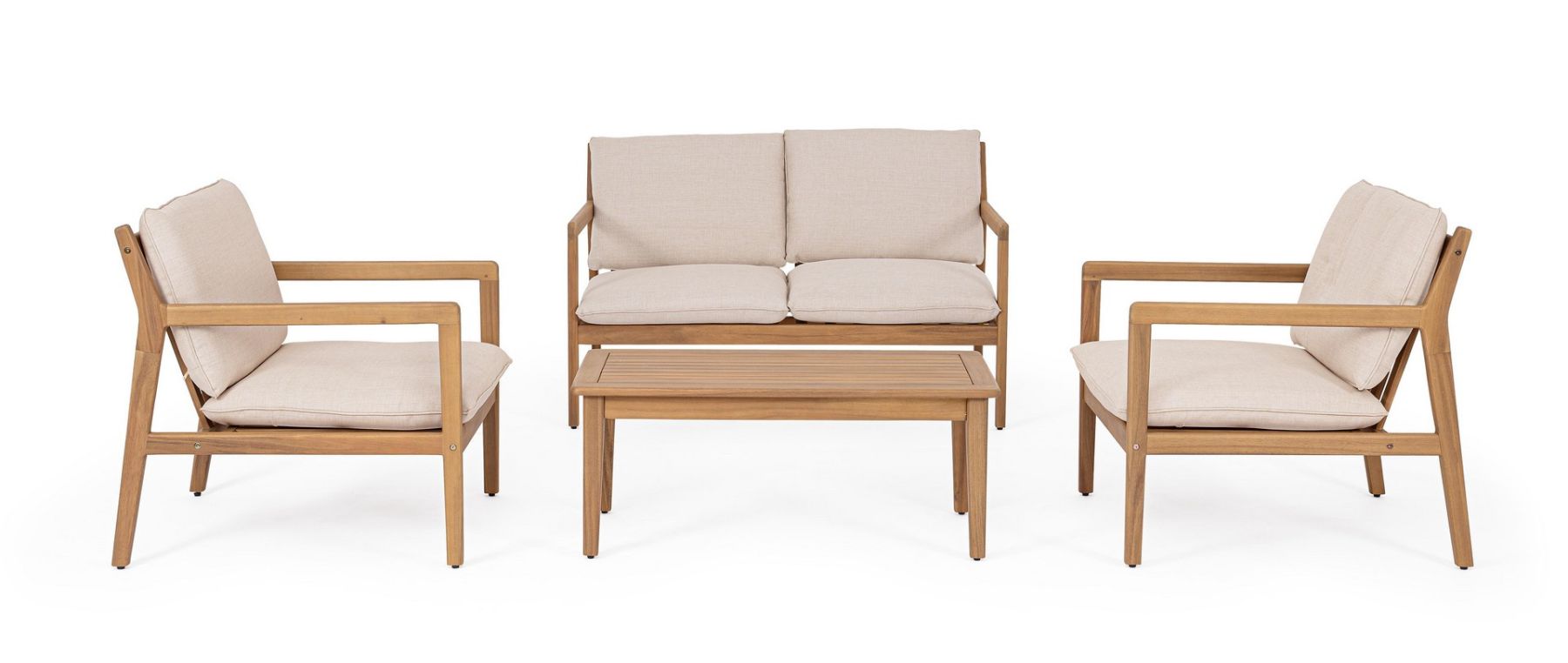 Zestaw wypoczynkowy DANUBIO to kwintesencja naturalnego, klasycznego designu. Łączy szlachetne, certyfikowane drewno akacjowe z wygodą wodoodpornych poduszek, tworząc idealną, 4-osobową strefę lounge.