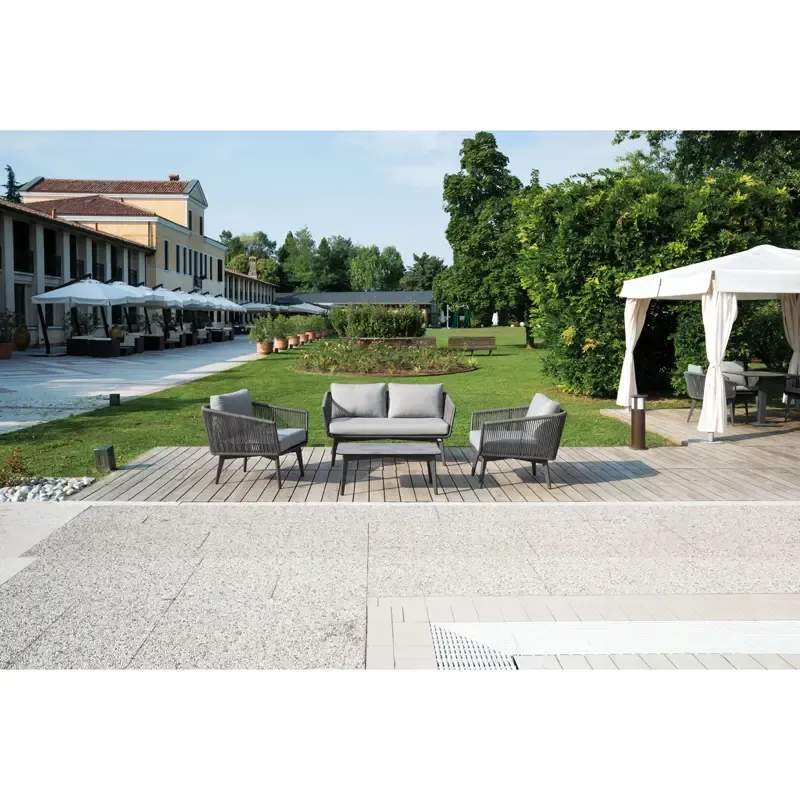 Zestaw wypoczynkowy DIVA, zaprojektowany przez Normand Couture Designer, to esencja elegancji i bezkompromisowej trwałości outdoor. Łączy subtelny, opływowy design z wygodnymi, wodoodpornymi poduszkami, tworząc luksusową strefę relaksu na tarasie.