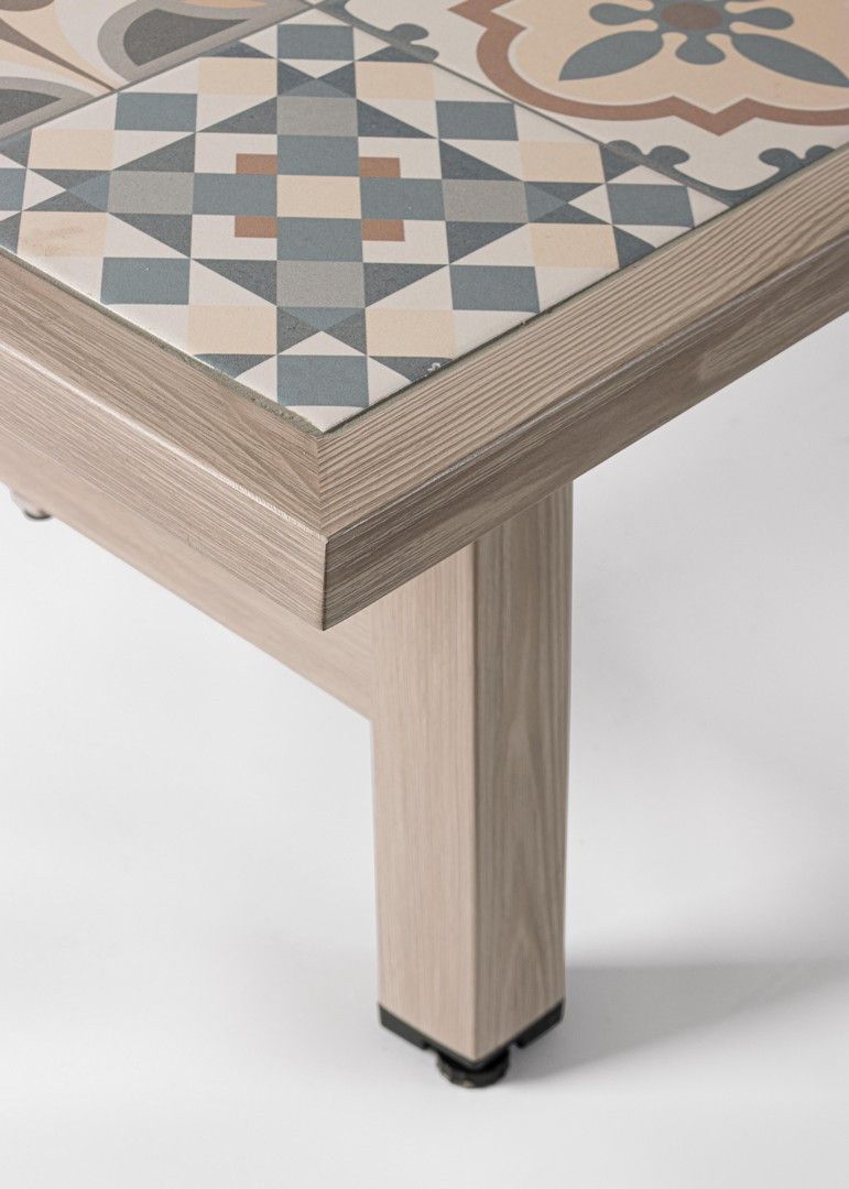 Blat Stolika: Blat wyłożony jest hiszpańskimi płytkami z porcelany szkliwionej – materiałem ekstremalnie odpornym na zarysowania, plamy i warunki pogodowe.