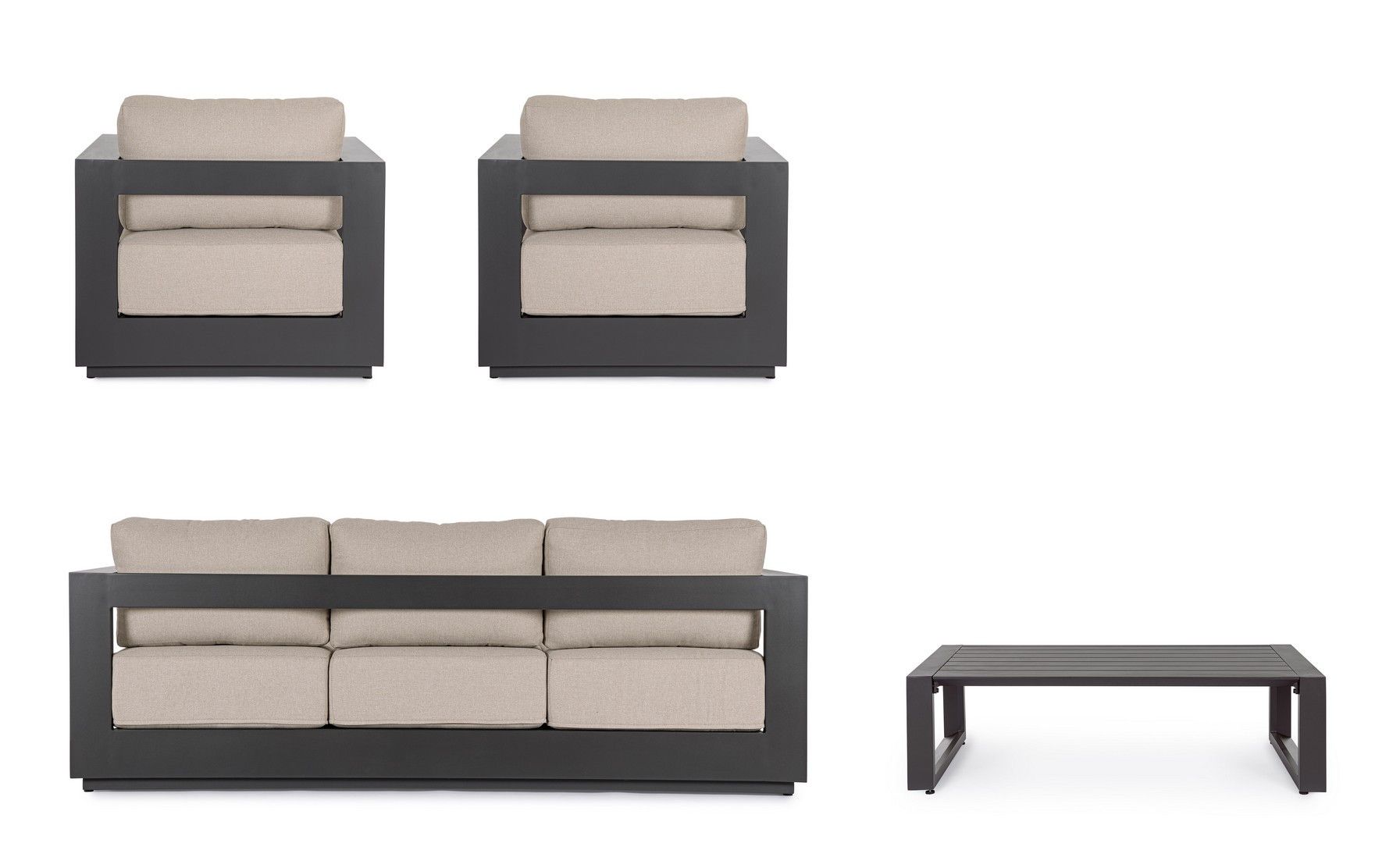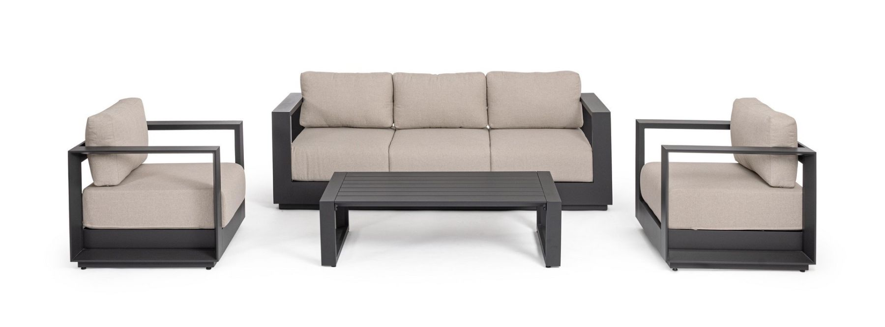 Zestaw wypoczynkowy MOSES to kwintesencja minimalistycznego, geometrycznego designu i bezkompromisowej trwałości outdoor. Jest idealny do stworzenia luksusowej strefy lounge na tarasie lub w ogrodzie.