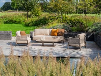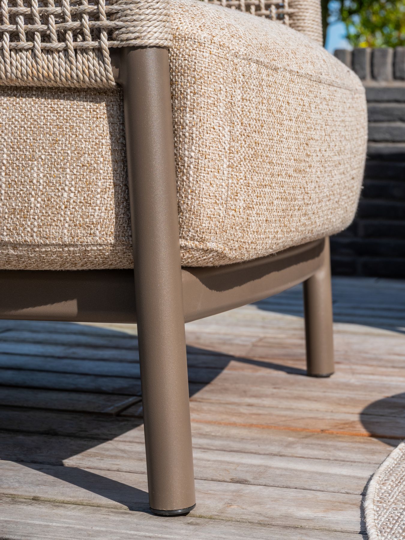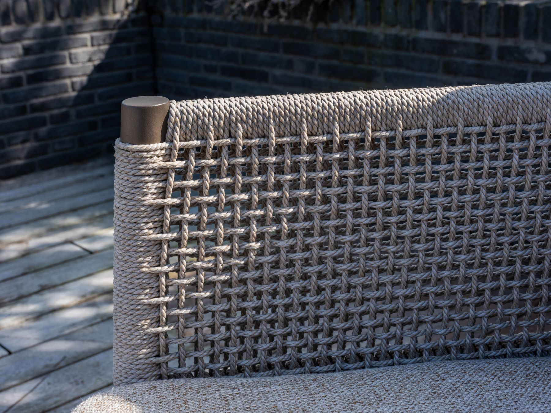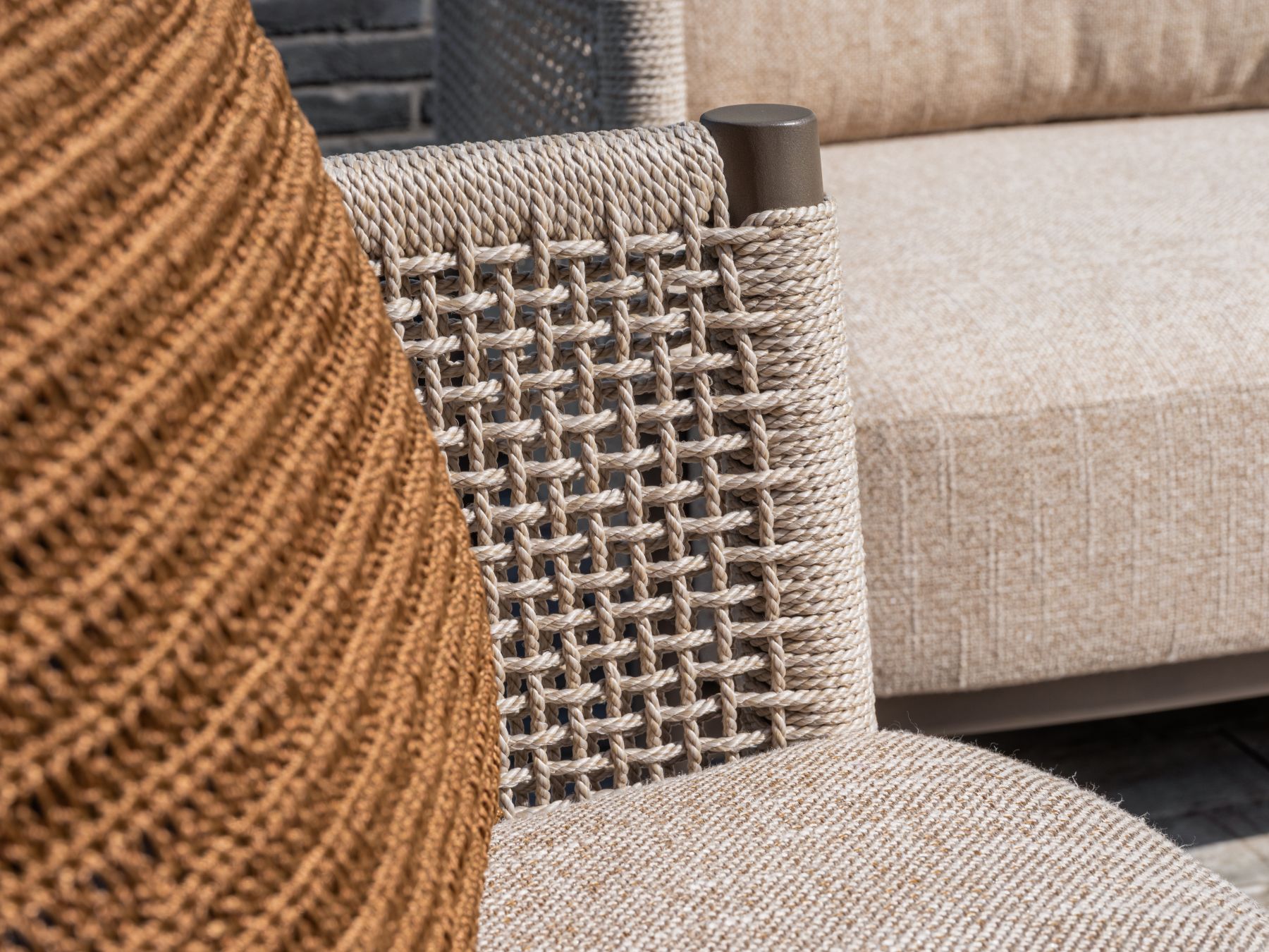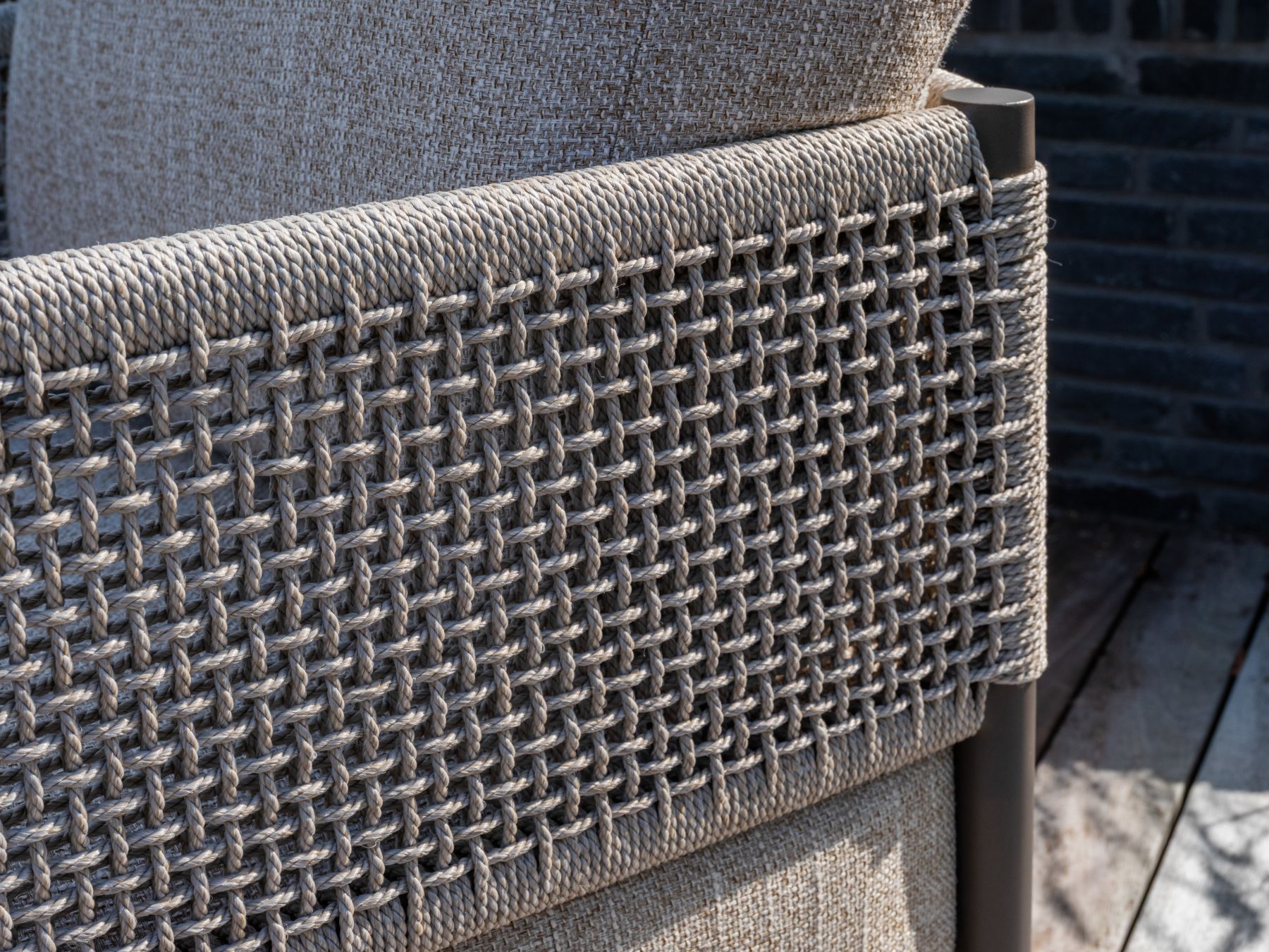Kolekcja Savanne to balans między nowoczesnym luksusem a naturą. Zestaw wyróżnia się unikalną kolorystyką ramy w odcieniu „Terre” oraz precyzyjnym splotem linowym. Dzięki zastosowaniu materiałów najwyższej klasy, meble są przystosowane do całorocznego użytku zewnętrznego.