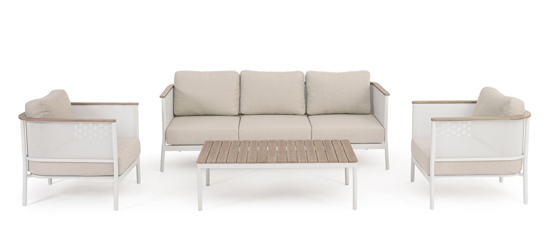 ULISES : komplet wypoczynkowy outdoor – aluminium i wykończenia Wood Effect